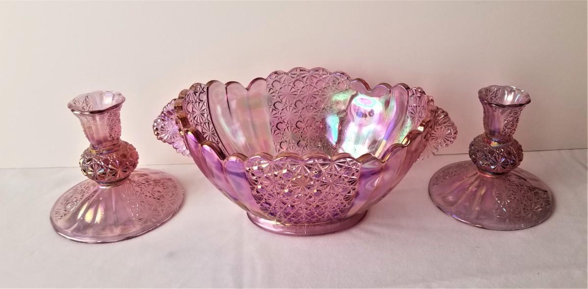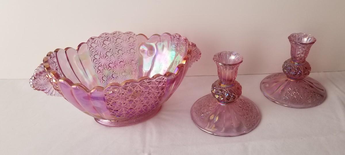 Lot #2 FENTON Lavender Set - Bowl & 2 candlesticks
