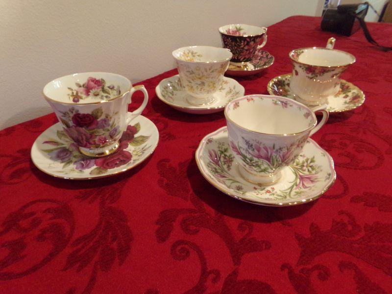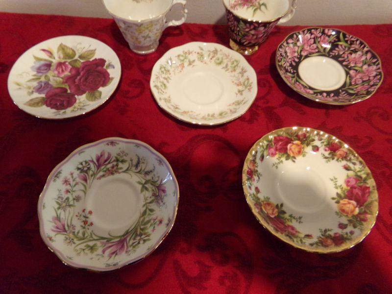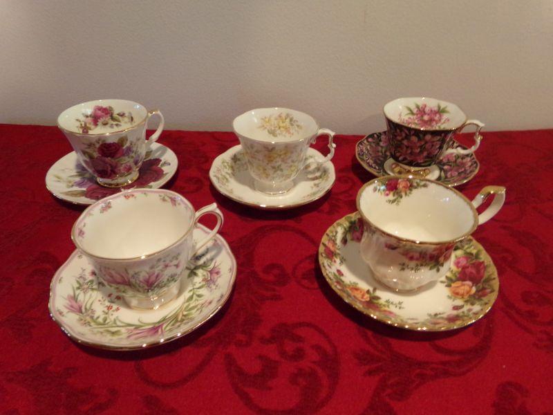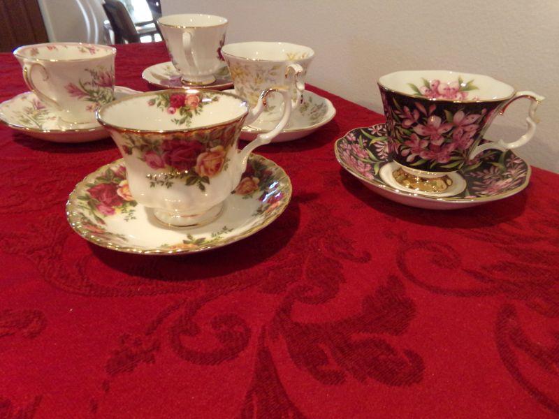 10 PC OF FINE BONE CHINA. 4 OF THEM ARE ROYAL ALBERT PIECES AND THE OTHER 1 IS A DUCHESS. IN VERY GOOD CONDITION AND THEY ARE VERY DETAILED WITH GOLD TRIM.