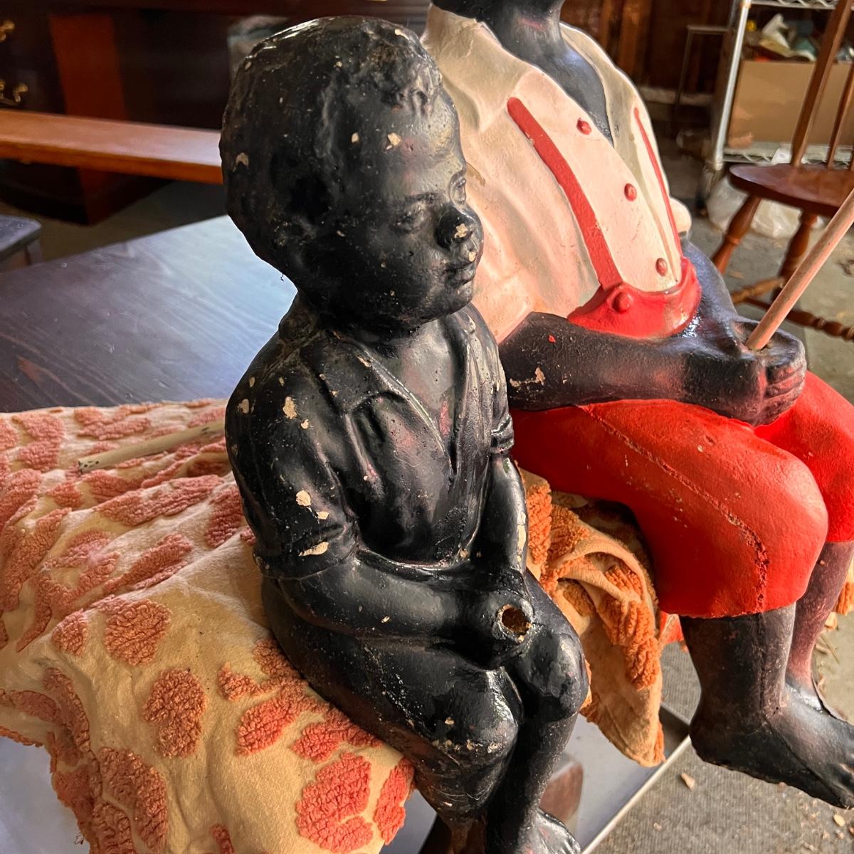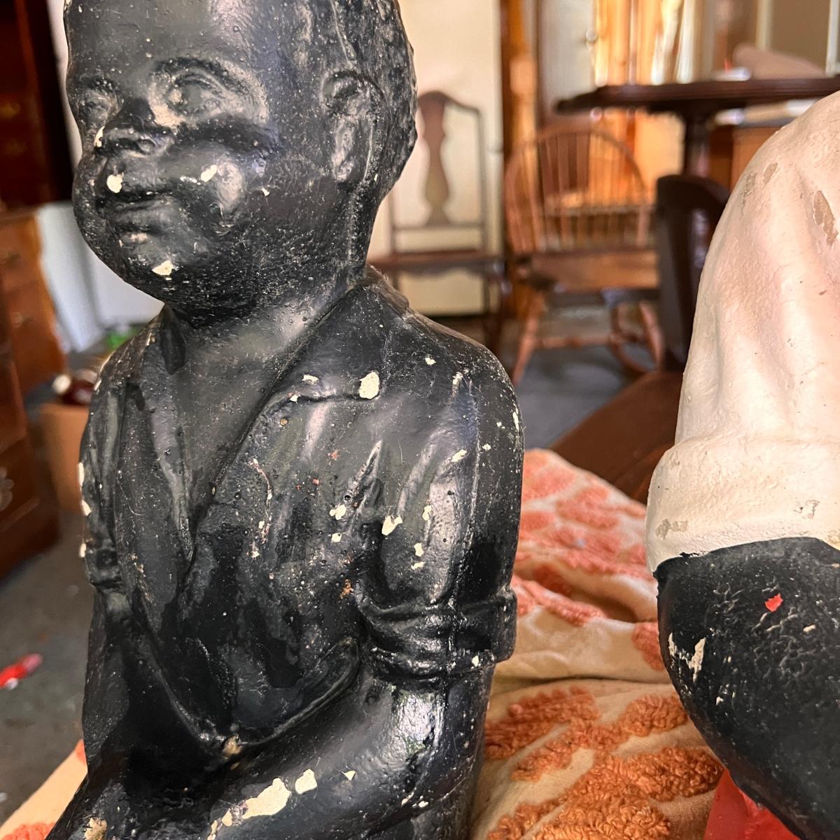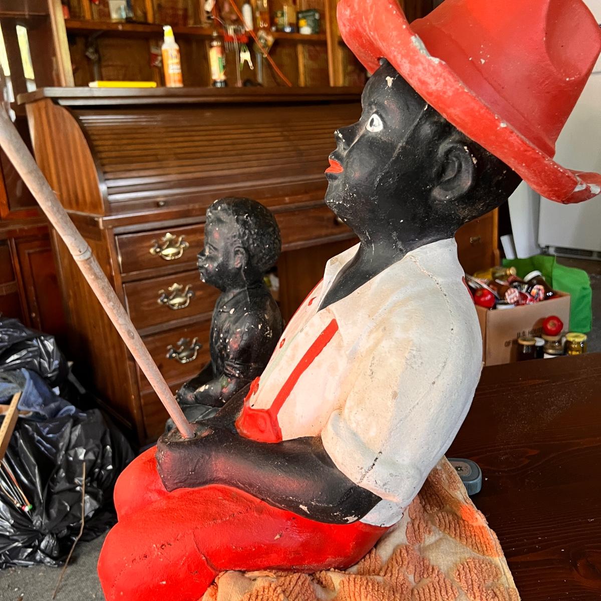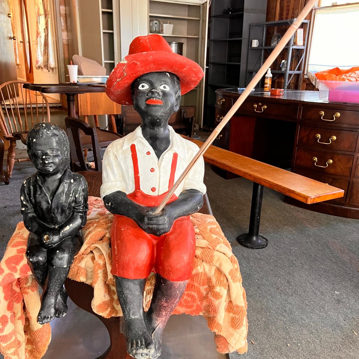 2 Antique Black Americana Fishing Boy Lawn Statues