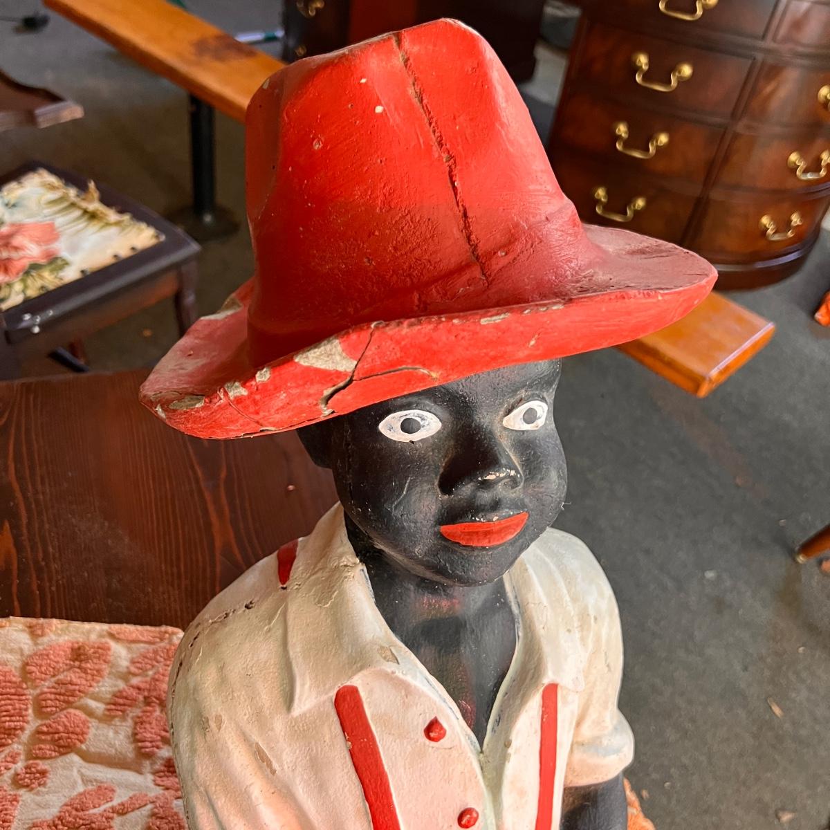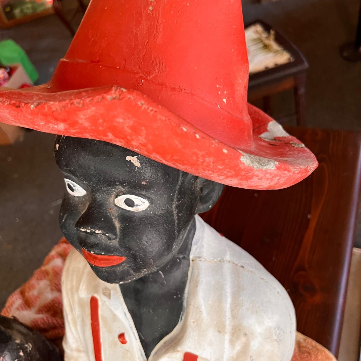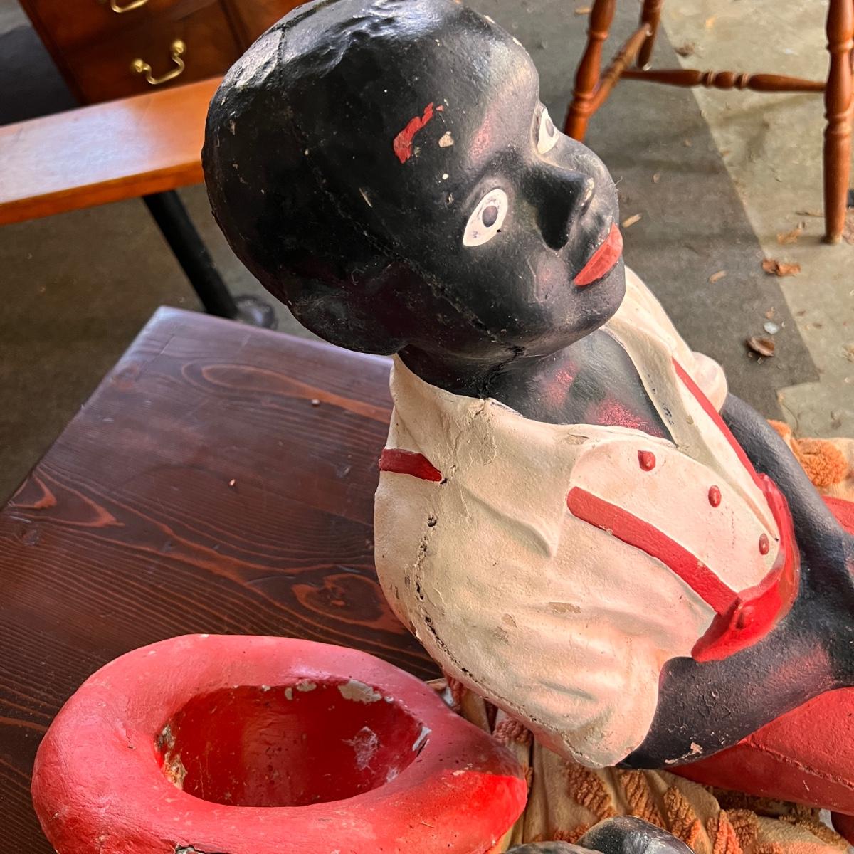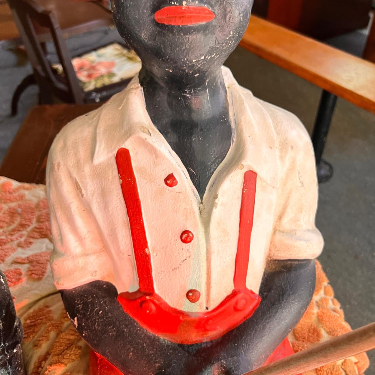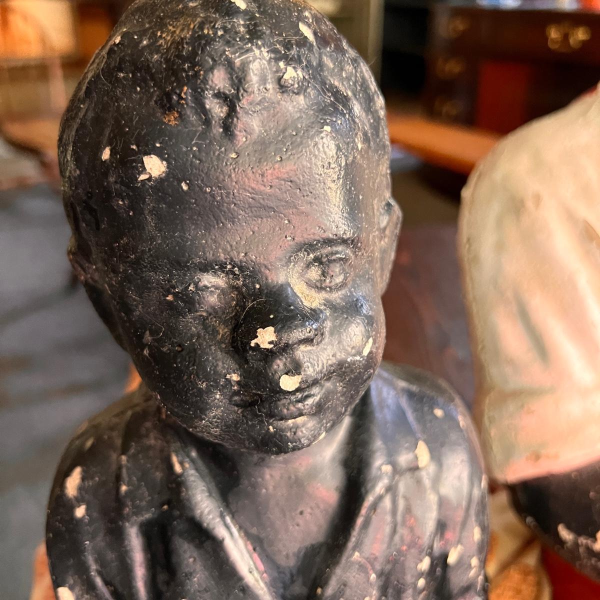 2 Antique Black Americana Fishing Boy Lawn Statues