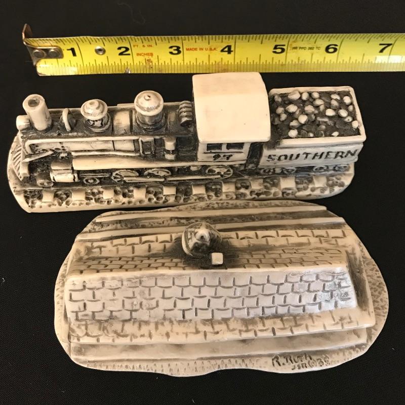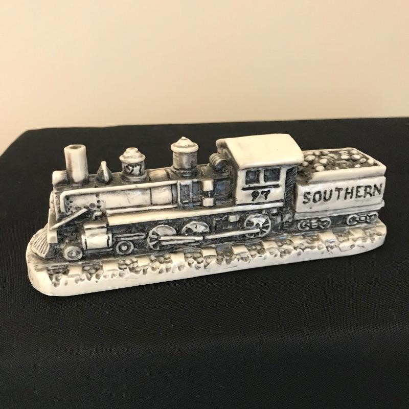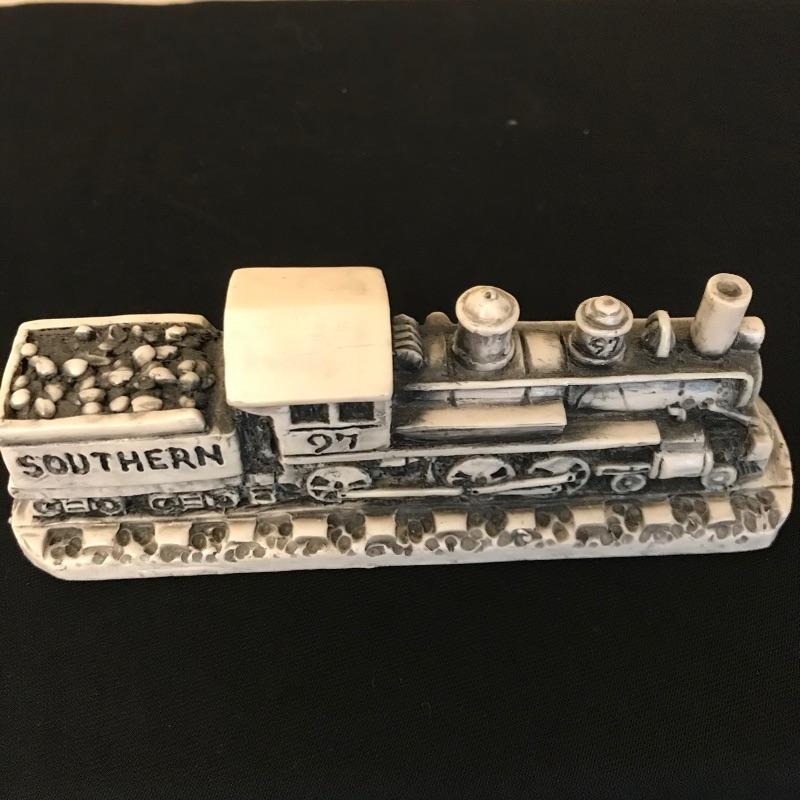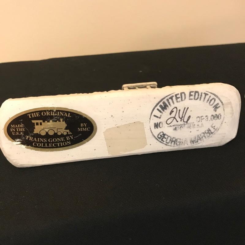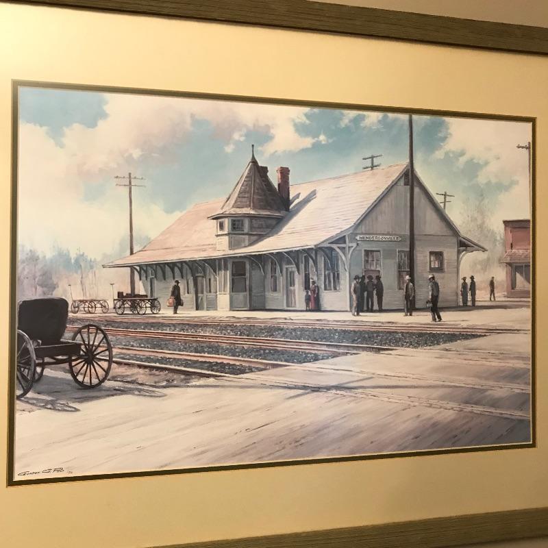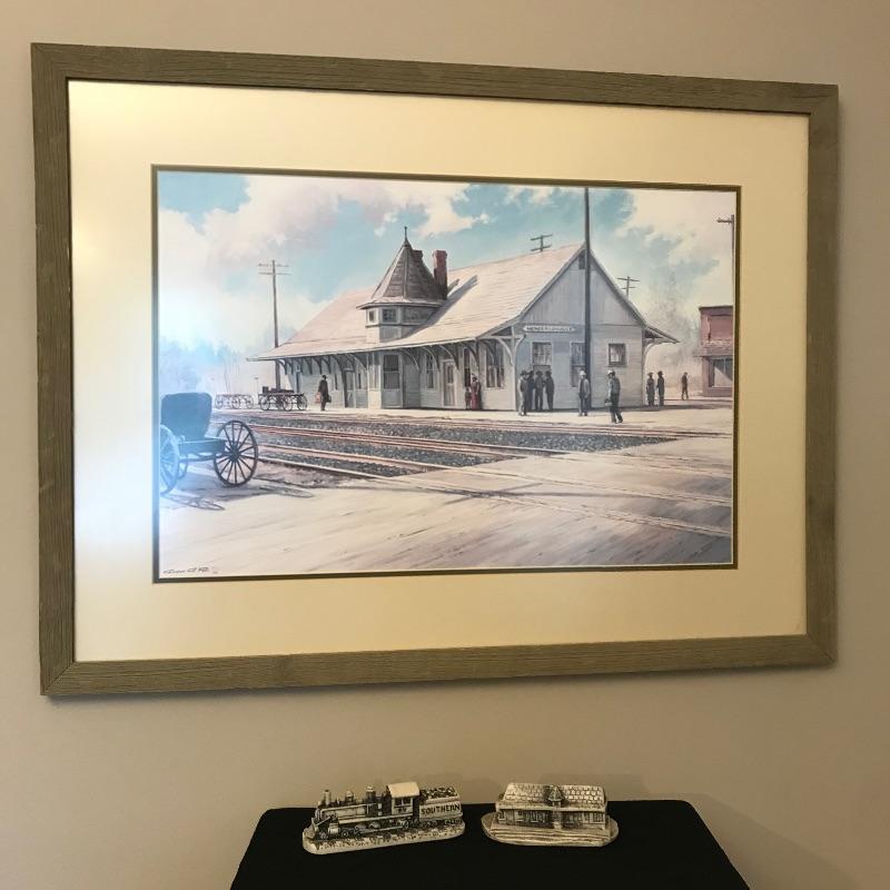 Beautiful piece of history for the WNC native. Lot includes a signed and dated scene depicting this much loved historical gem by artist Gordon G. Pond that is dated '88. Art is matted and seems to be behind low-glare glass in a nice rustic painted wood frame. Frame measures 33” x 25” and has just a couple of barely noticeable blemishes. Lot also features two Georgia Marble models including the Hendersonville depot and a Southern Train. See photos and grab this little slice of history! Shipping available. Shipping art can be costly. Please call UPS with dimensions at 828-252-6930 for a shipping quote prior to bidding.