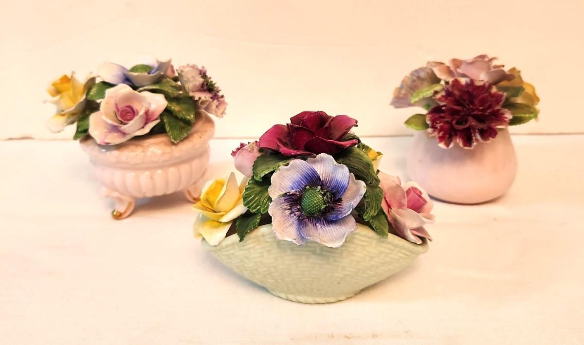 Lot of Vintage 3 English Staffordshire Bone China Flower Bouquets, as shown. Minor small losses, as are common to these pieces (nothing major). Average height is 4" tall.