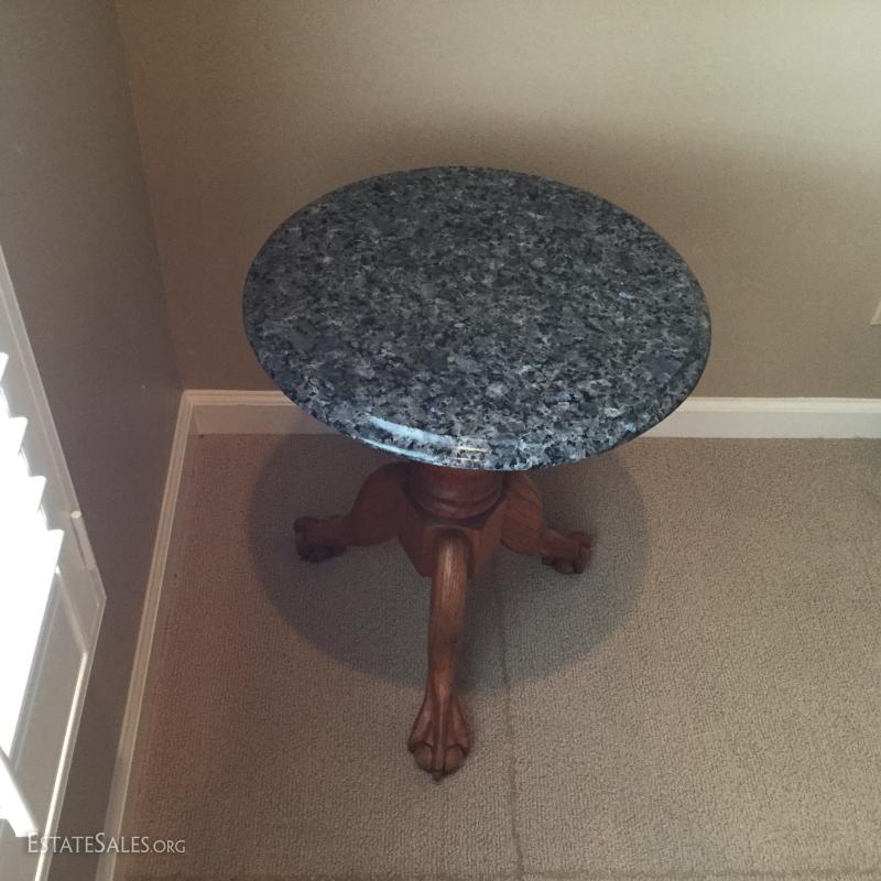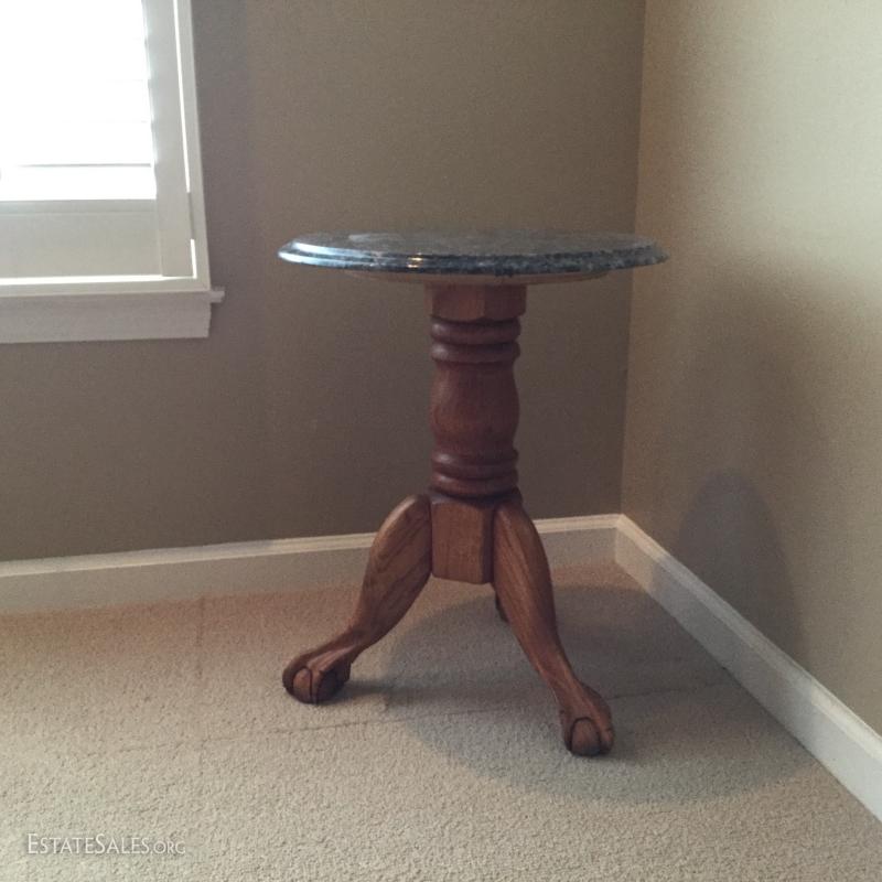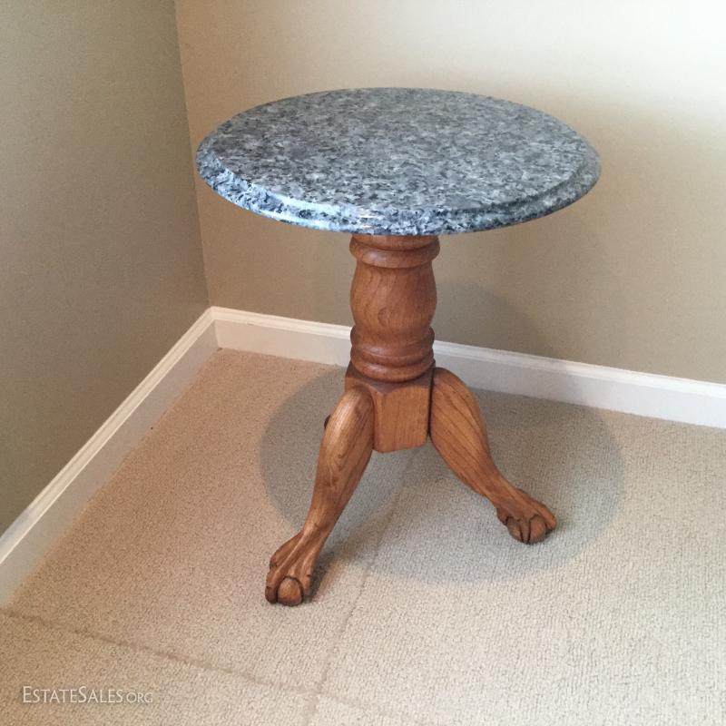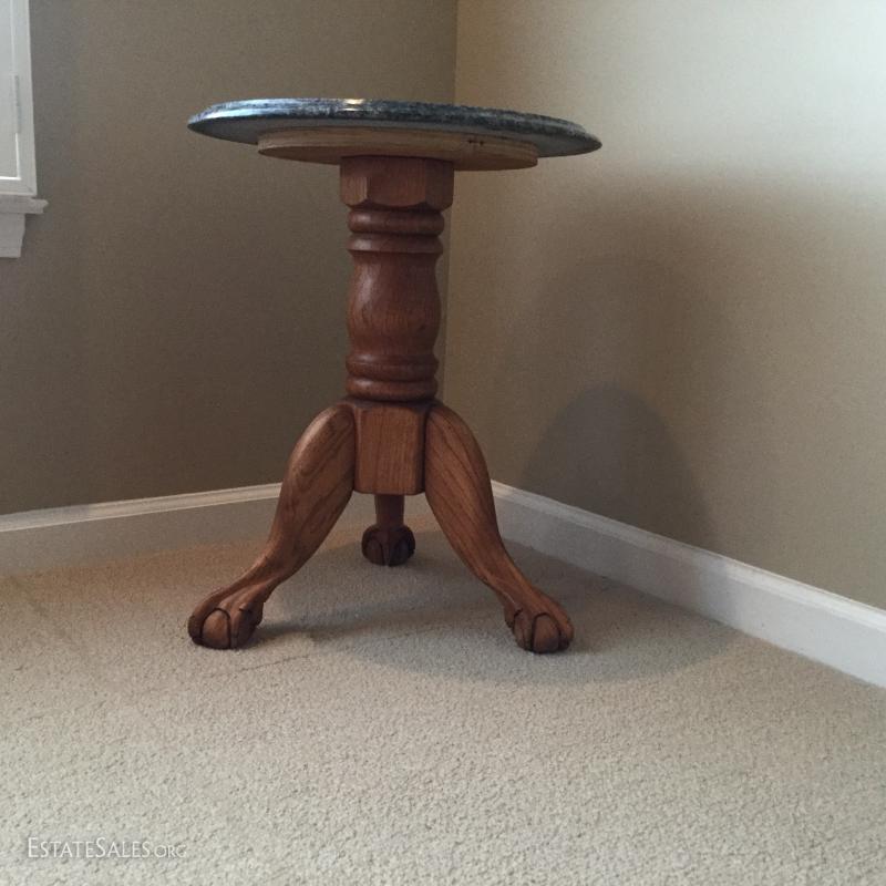 Marble top claw foot table. 18.5" Diameter x 23" Height