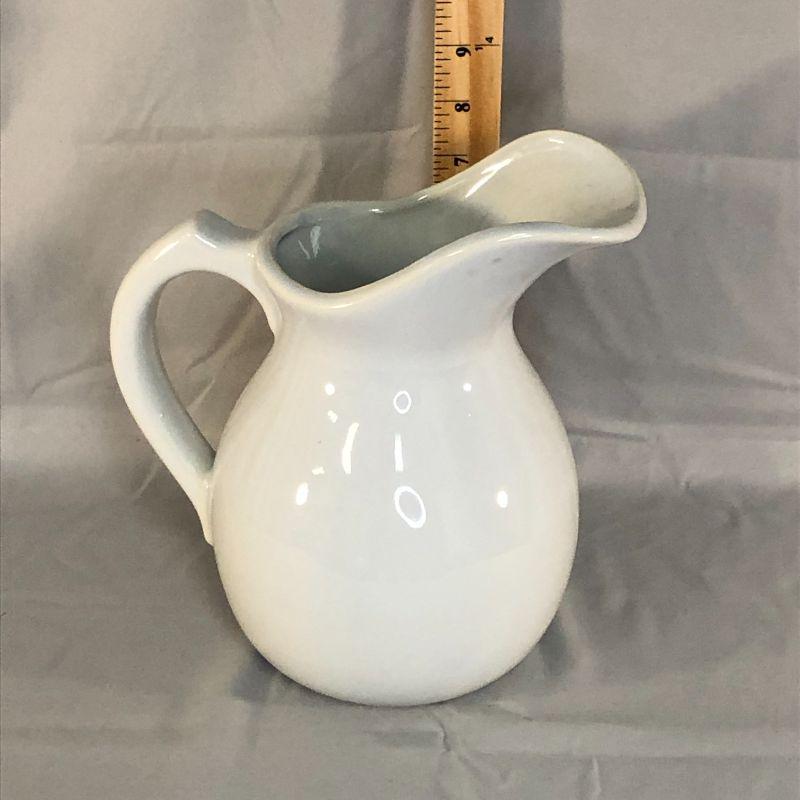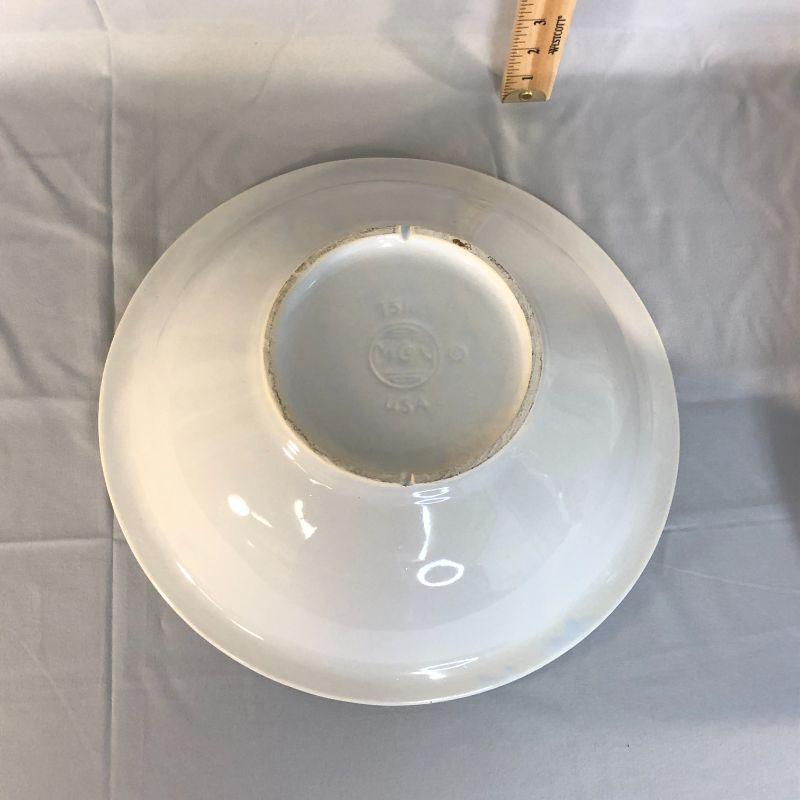 This set is in excellent condition. I did not find any chips, cracks, repairs, or paint loss. The pitcher is 9.5" tall and the bowl is 12" in diameter.