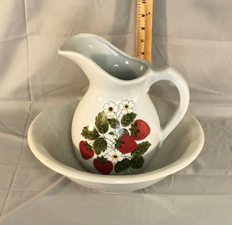 Lot 2 - McCoy Strawberry Country 64 oz Pitcher and Bowl