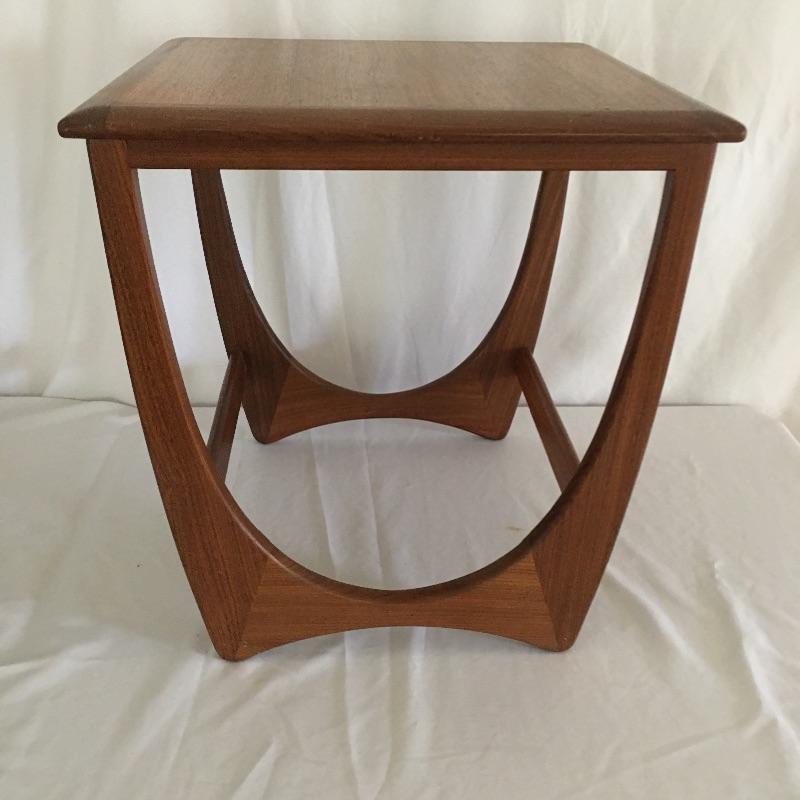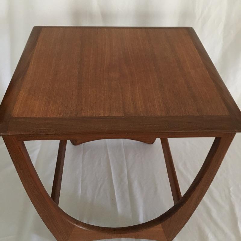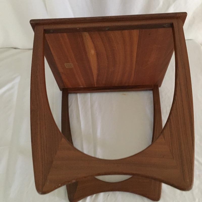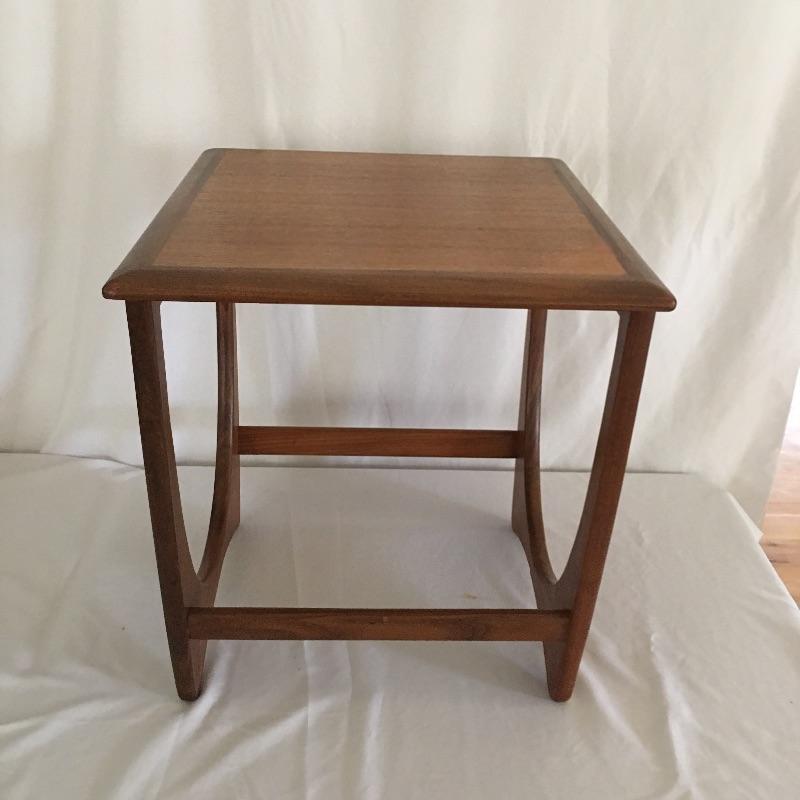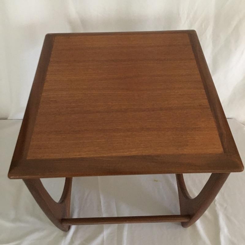 Beautiful MCM table made be E. Gomme. This piece will enhance the look of any room it resides in, so don’t let it slip away. Table measures 17” x 18” x 19”.