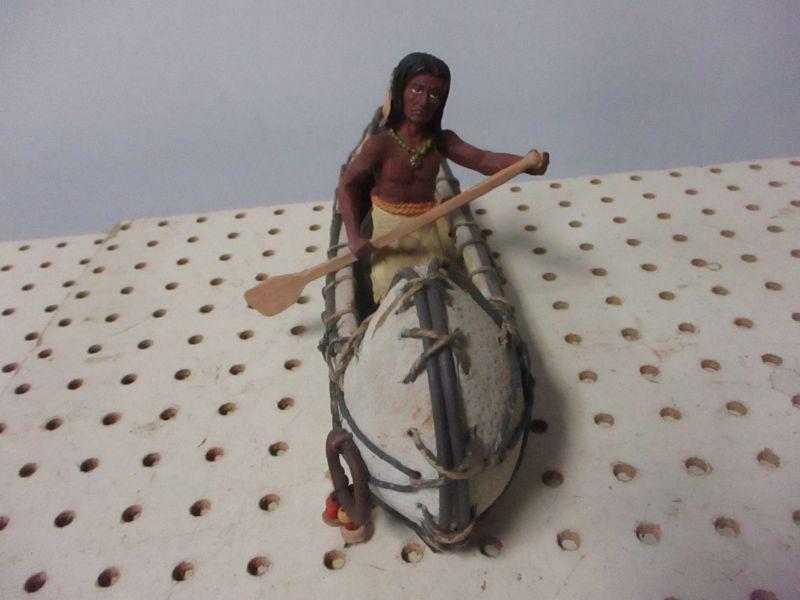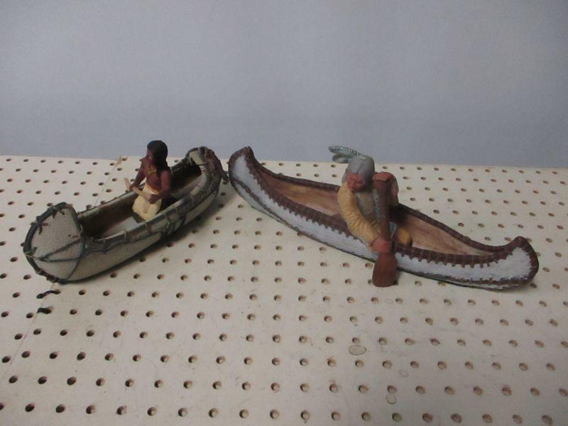Native American figurines in canoes
