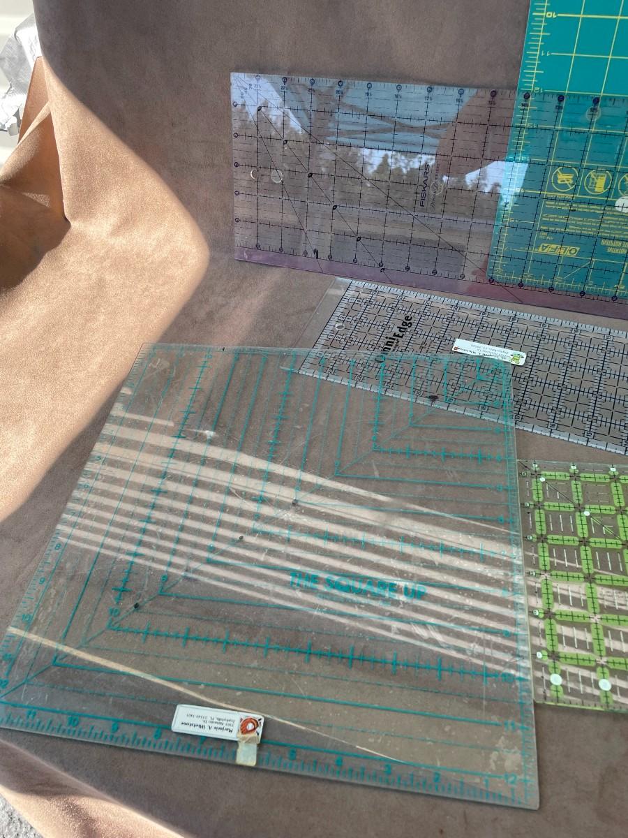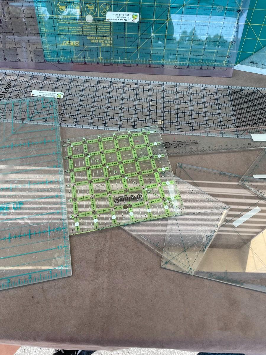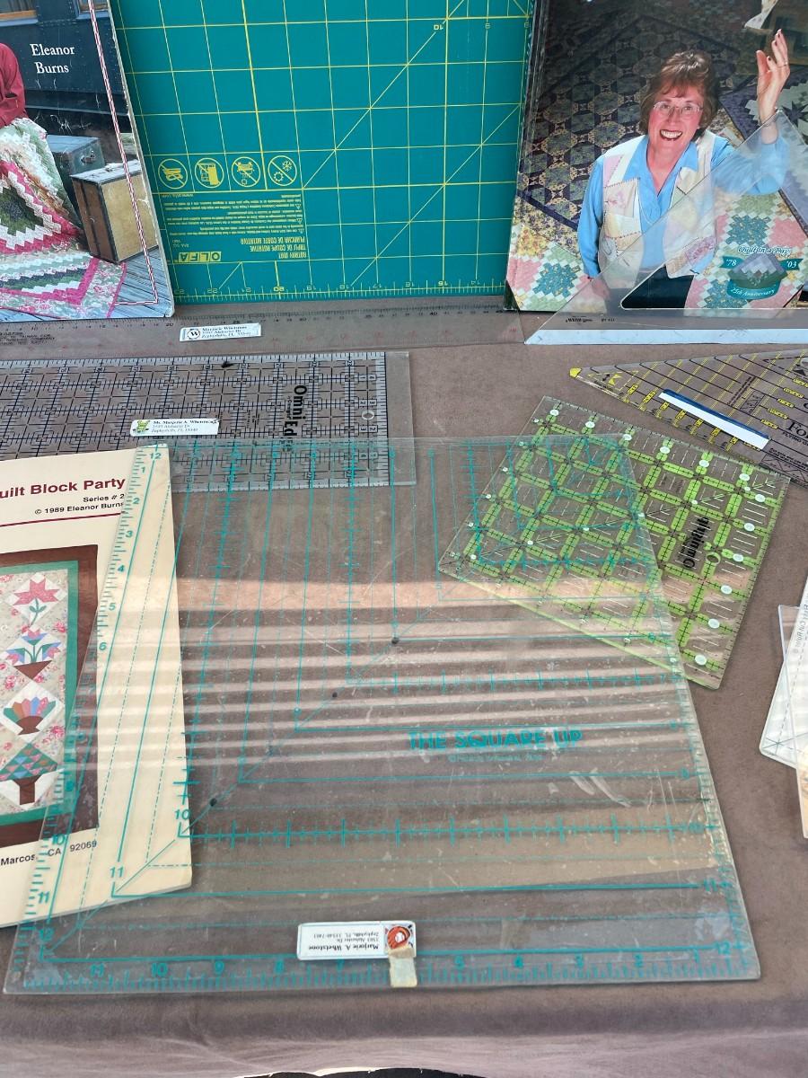 OLFA Self-Healing Rotary Mat, Instruction books and assorted quilting rulers. Good Condition.