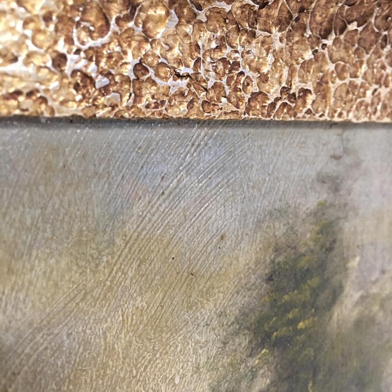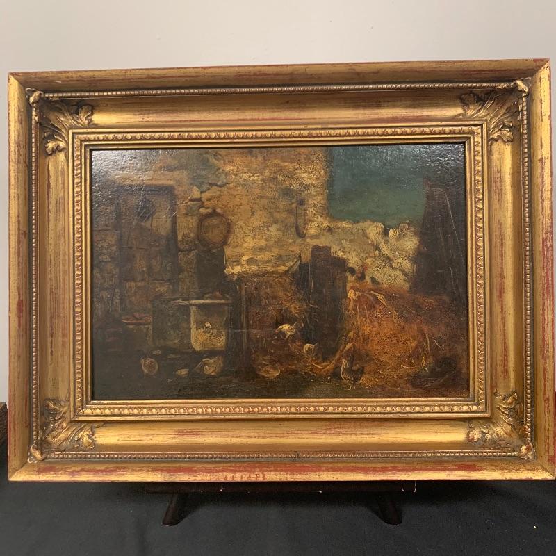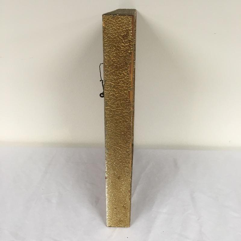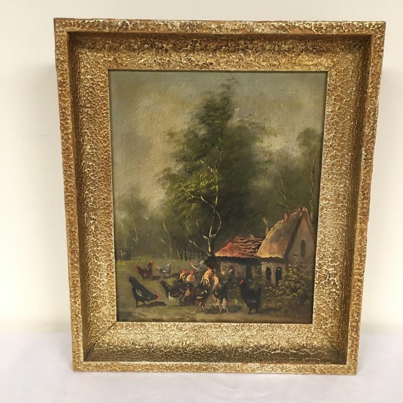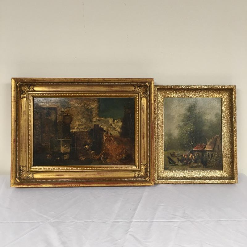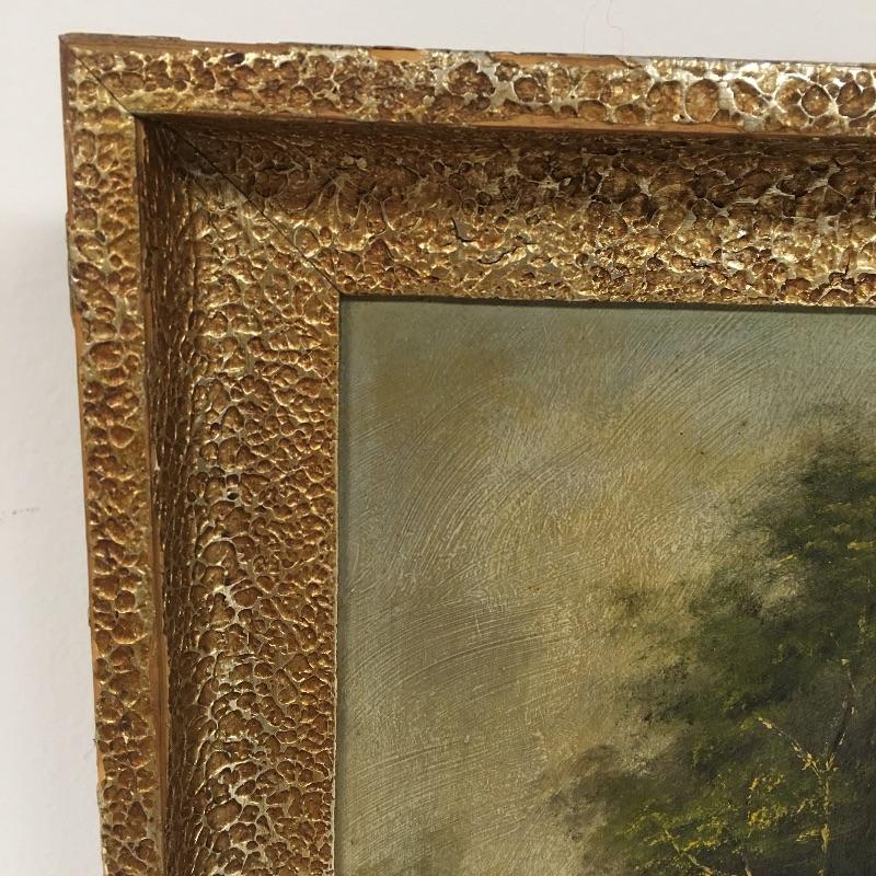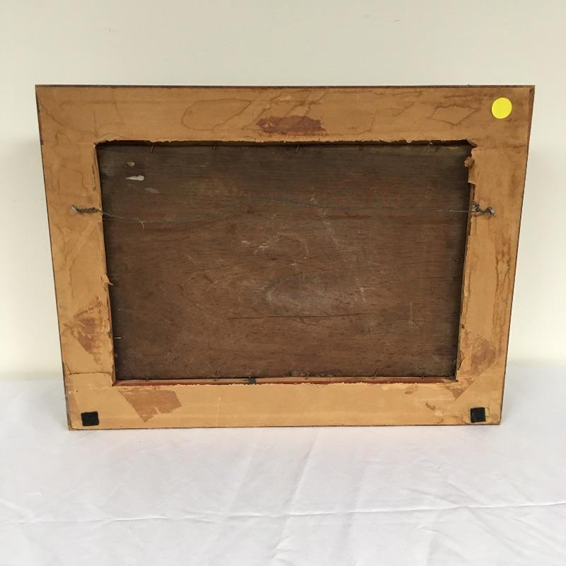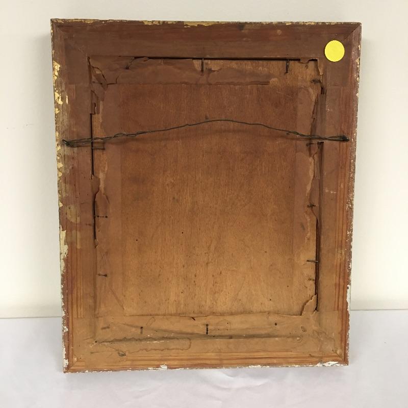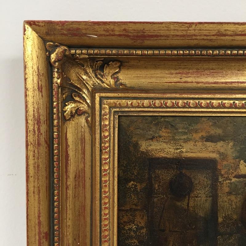 This pair of antique gold ornate framed artwork is unsigned and are panel artwork. Smaller frame has some chips, see pictures. Largest frame measures 14” x 18.5” x 2.25”.