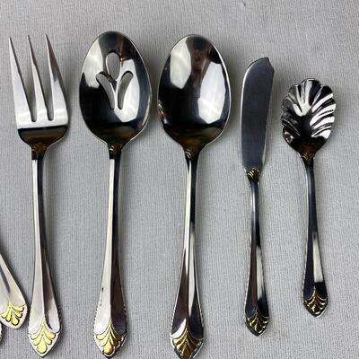 Lot# 63 S Wallace St Regis Gold 18/8 Stainless Flatware Serving Set with Soup Spoons