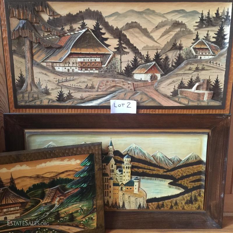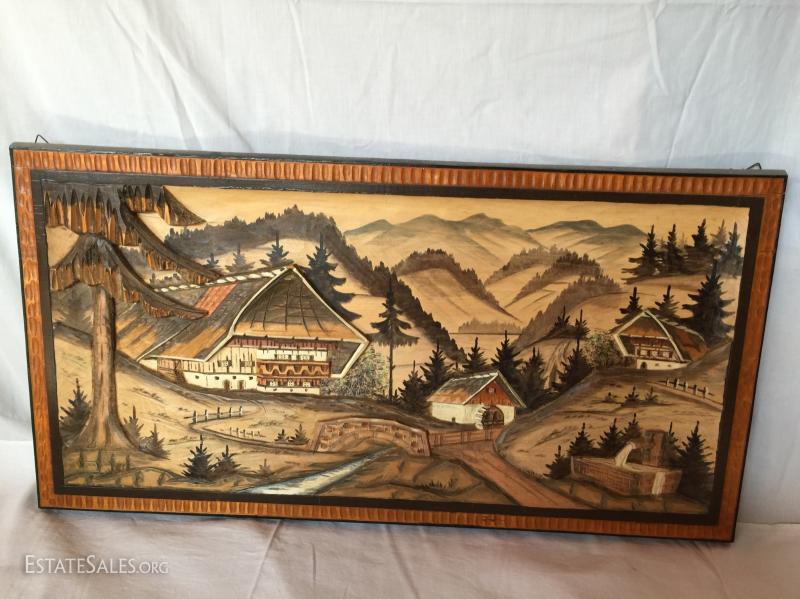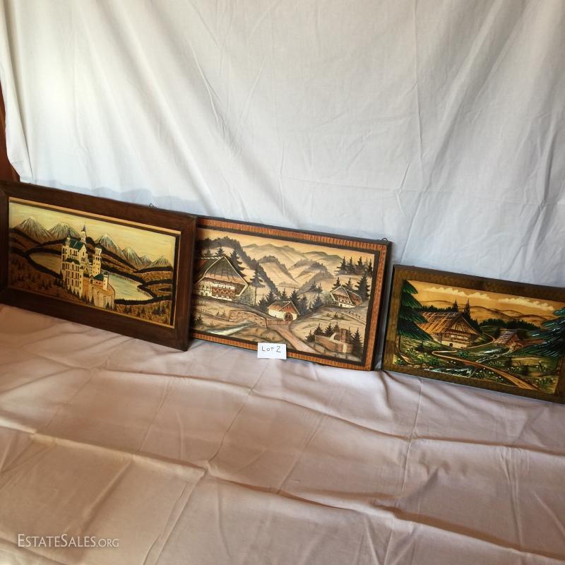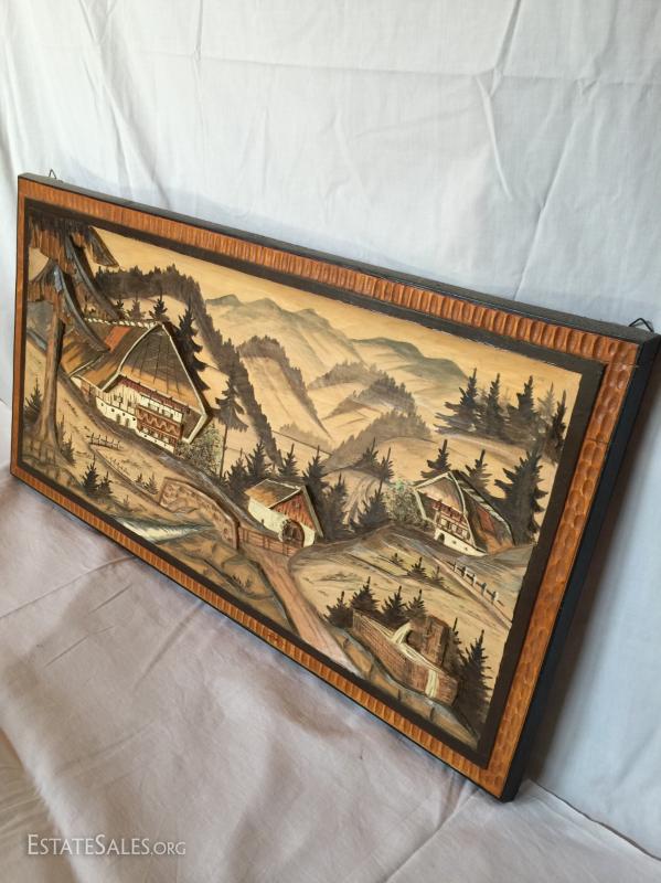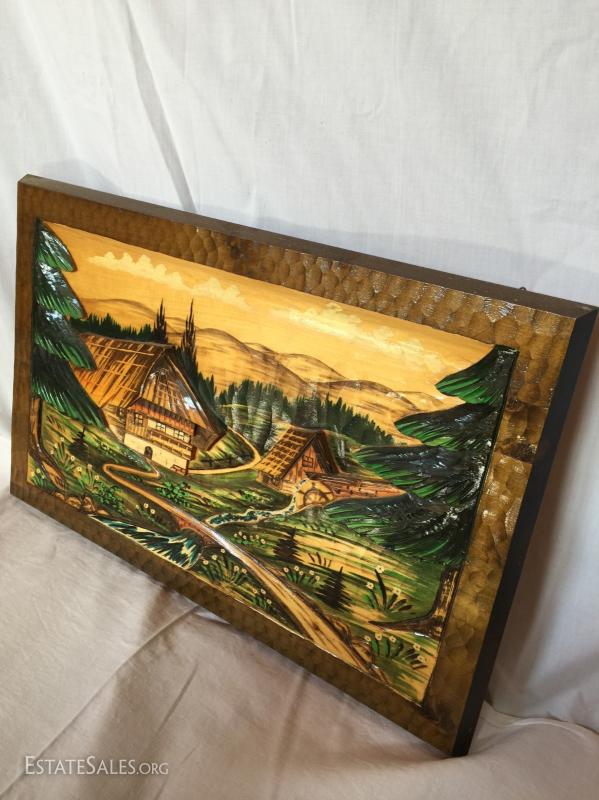 Wood carvings. Raised surface. No artist signature. See photos for details. Sold as is.