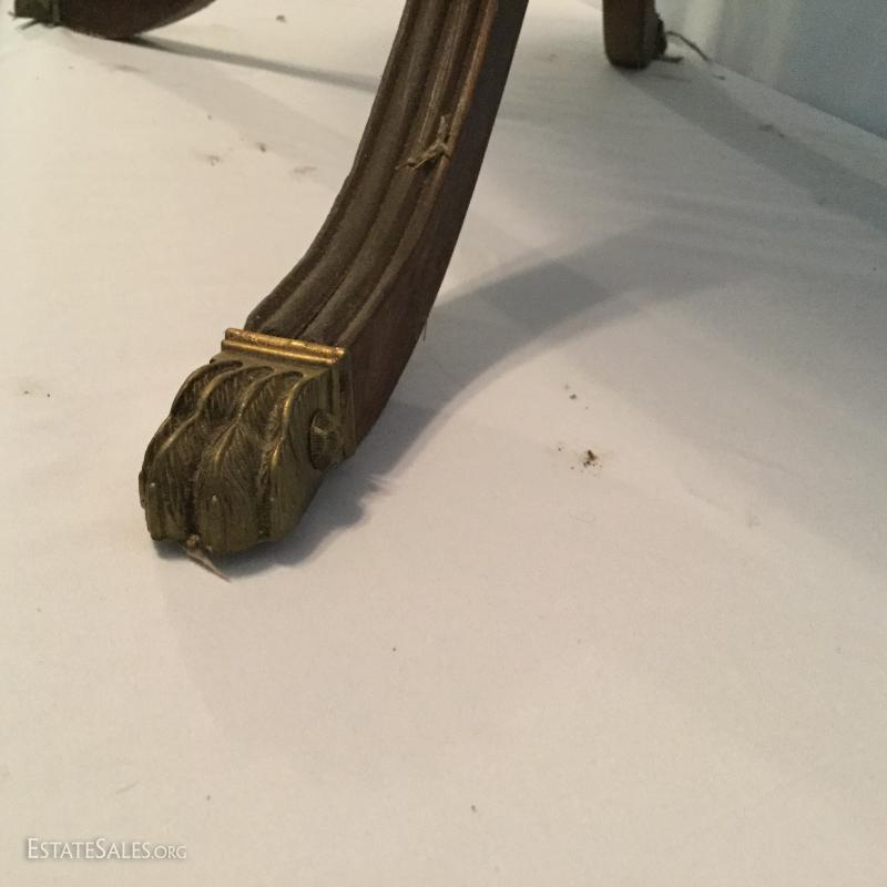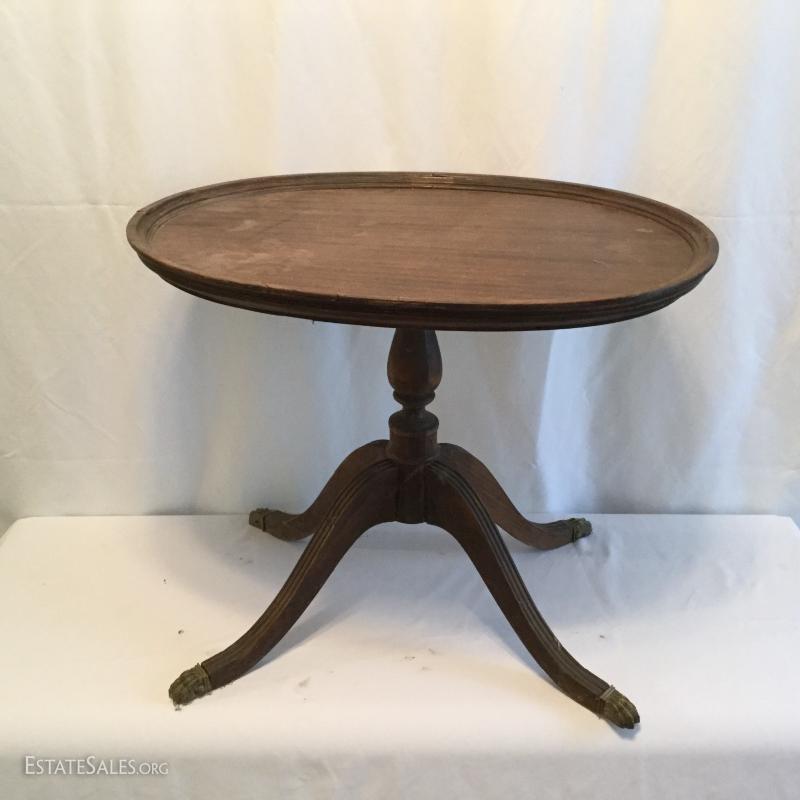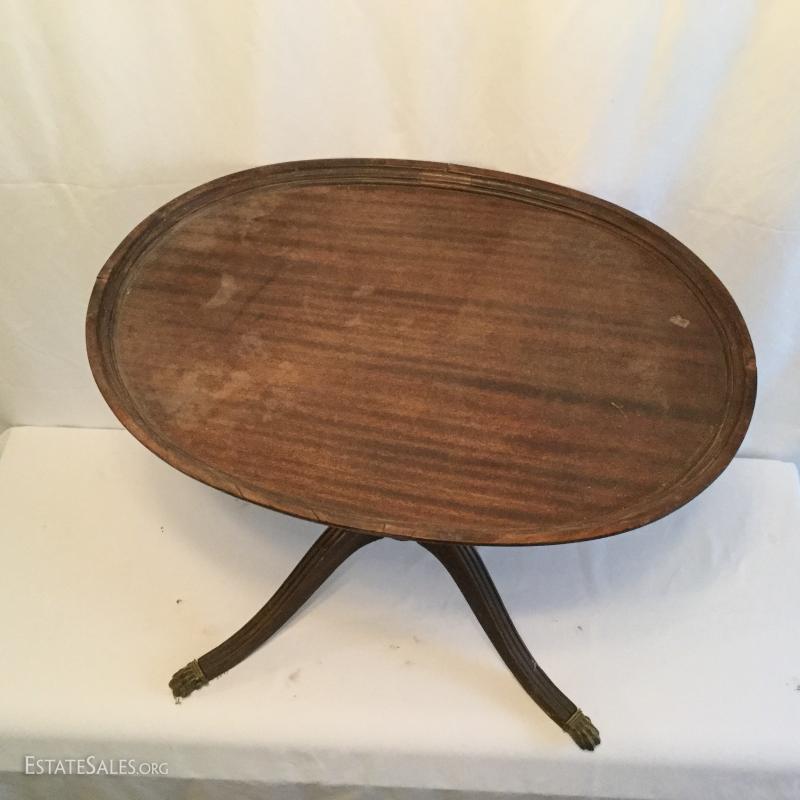 Oval Table with Brass Feet: 24.5" L x 18" W x 20.5" H.
