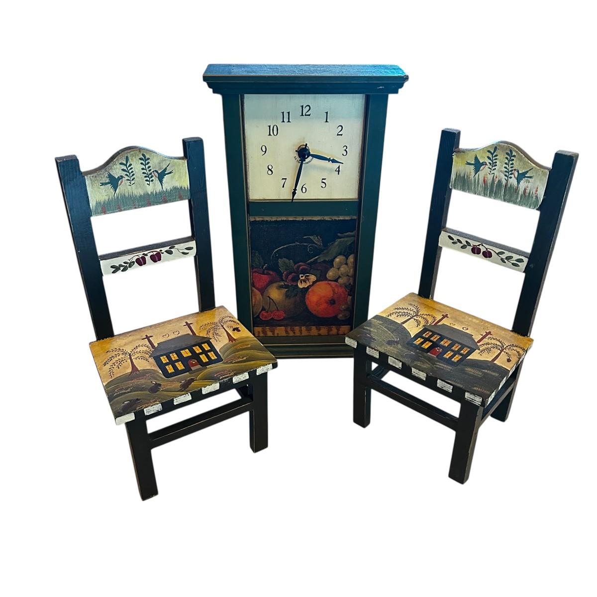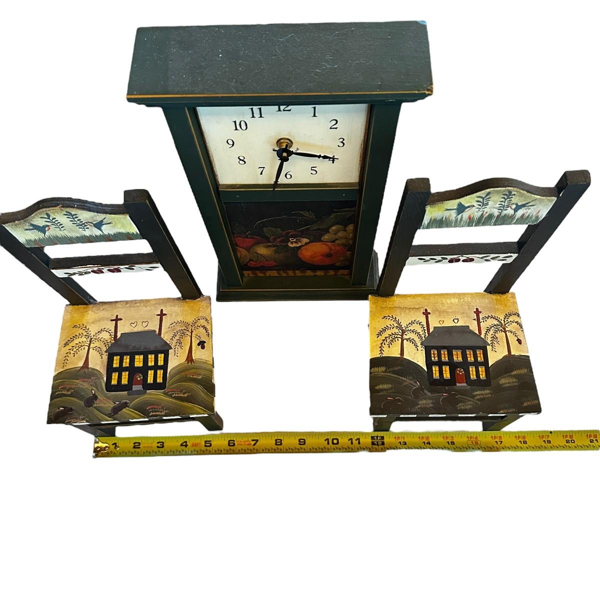 Lot 2 Small Doll Chairs and Clock (untested, uses battery)