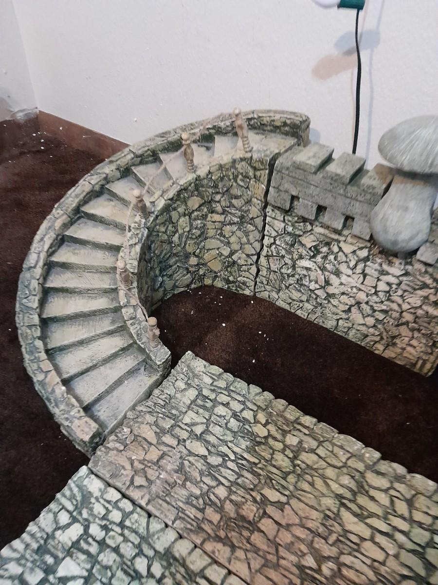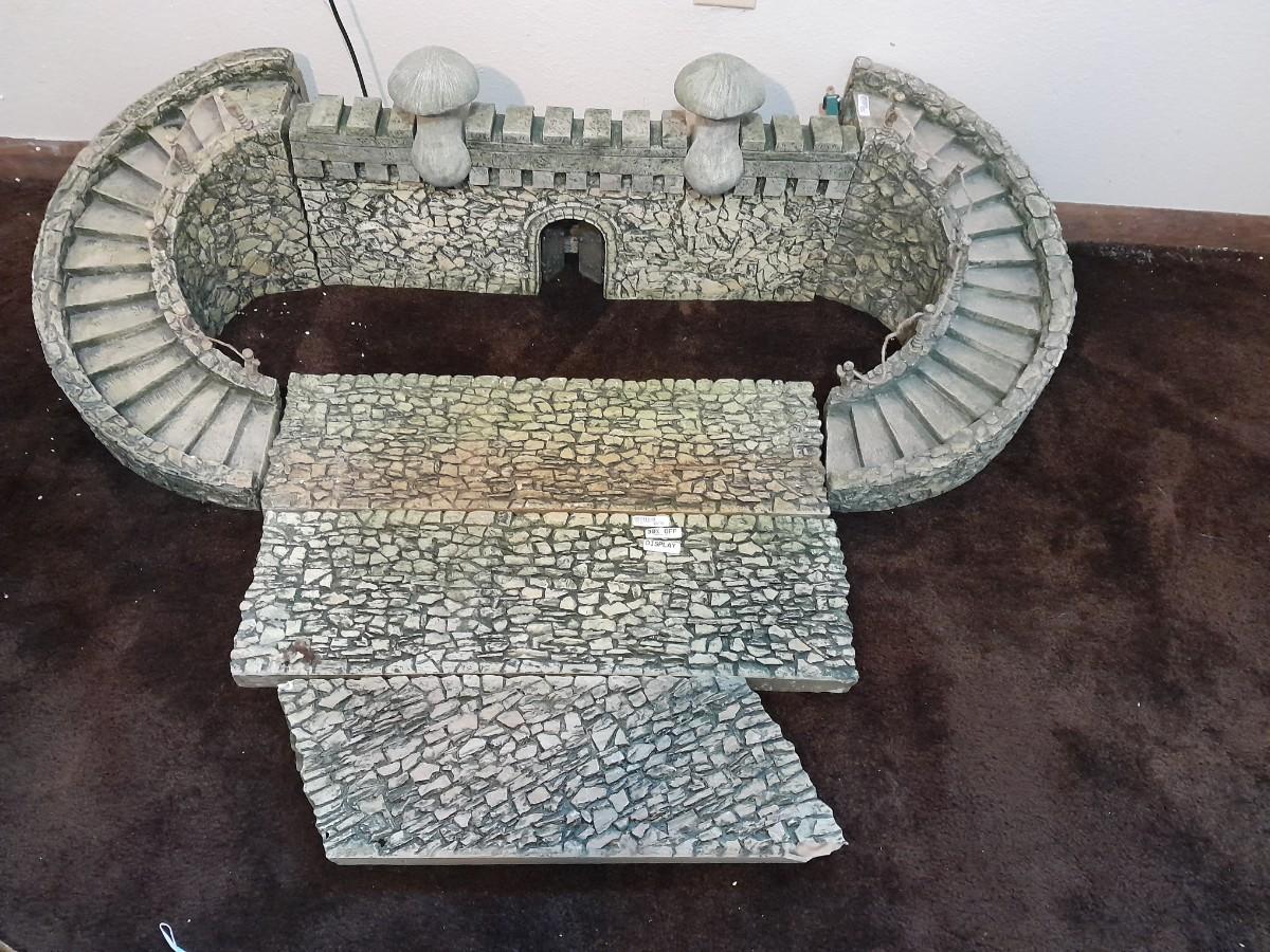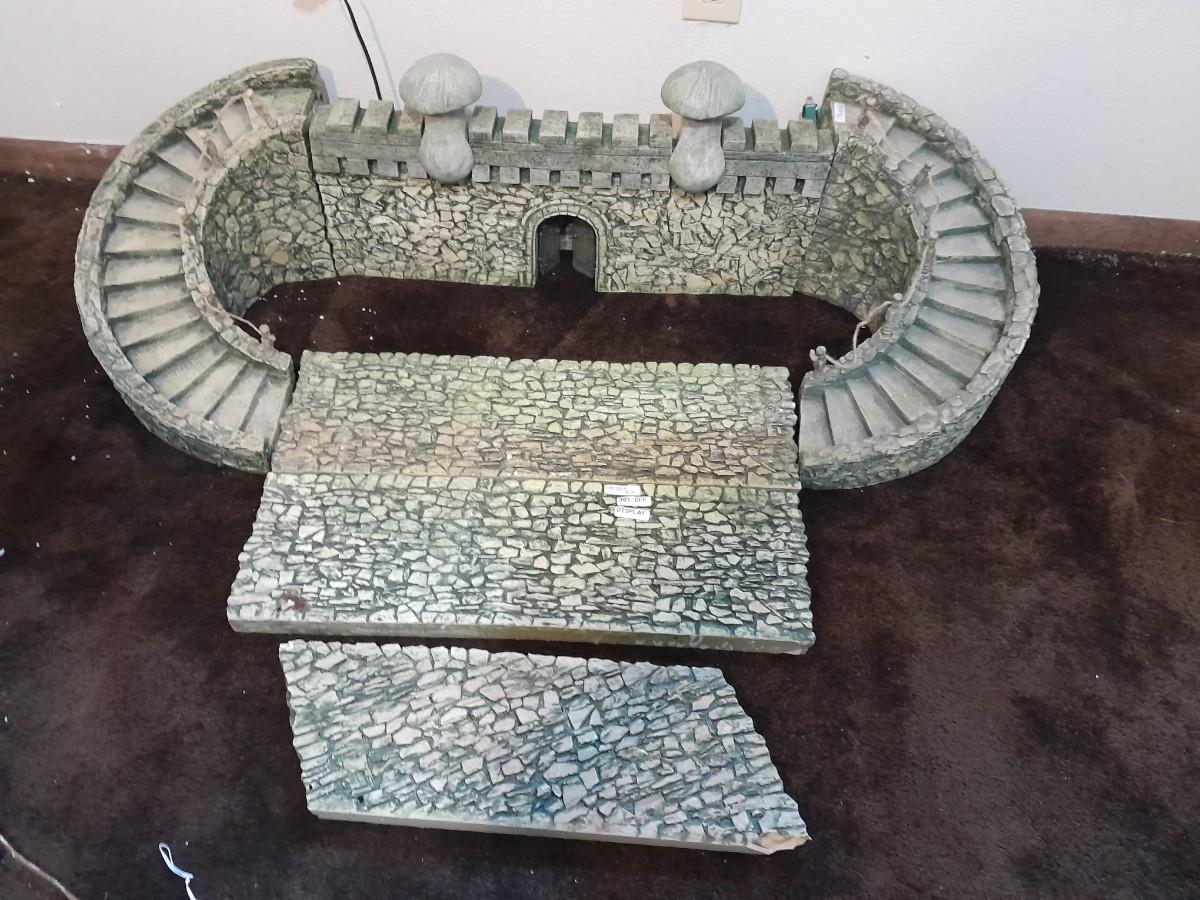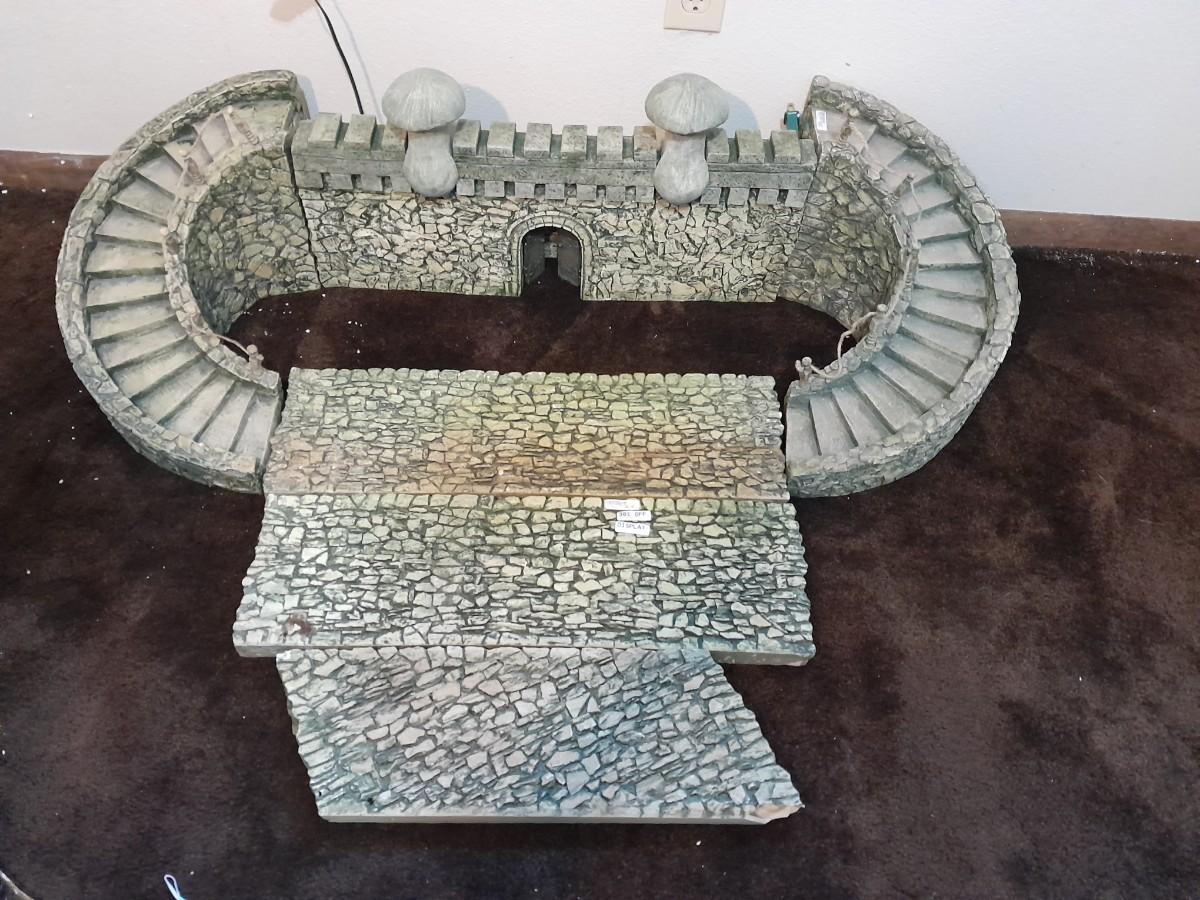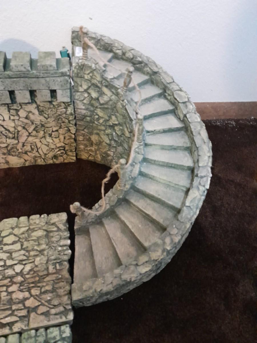 THIS IS A LARGE PIECE, APPROX 30" X 16". IT NEEDS TO HAVE THE ROPE POSTS REGLUED ON 1 SIDE AND THERE IS A BREAK TO THE FIRST PANEL LEADING UP TO THE STAIRS