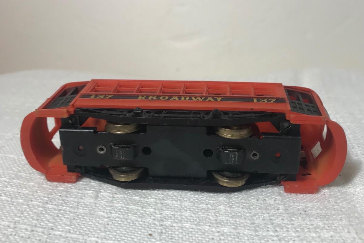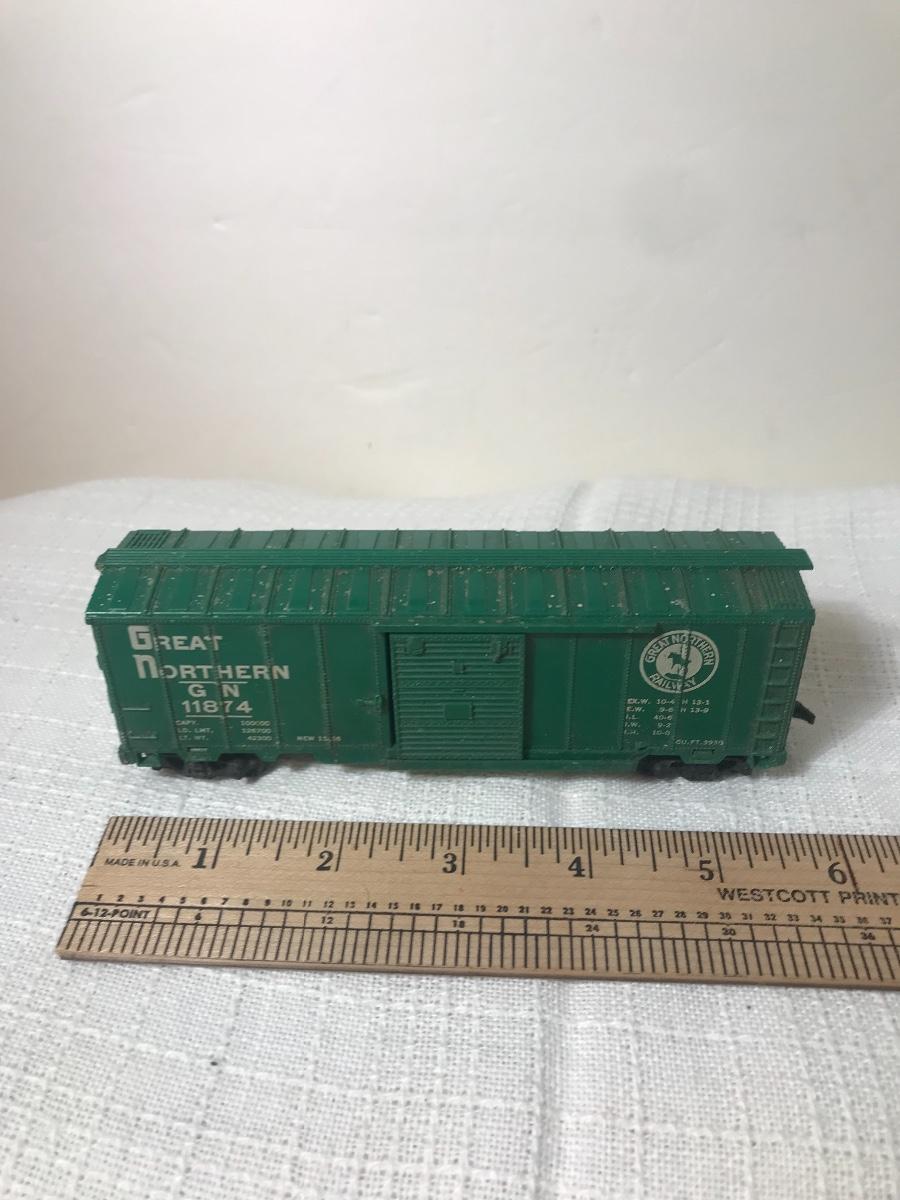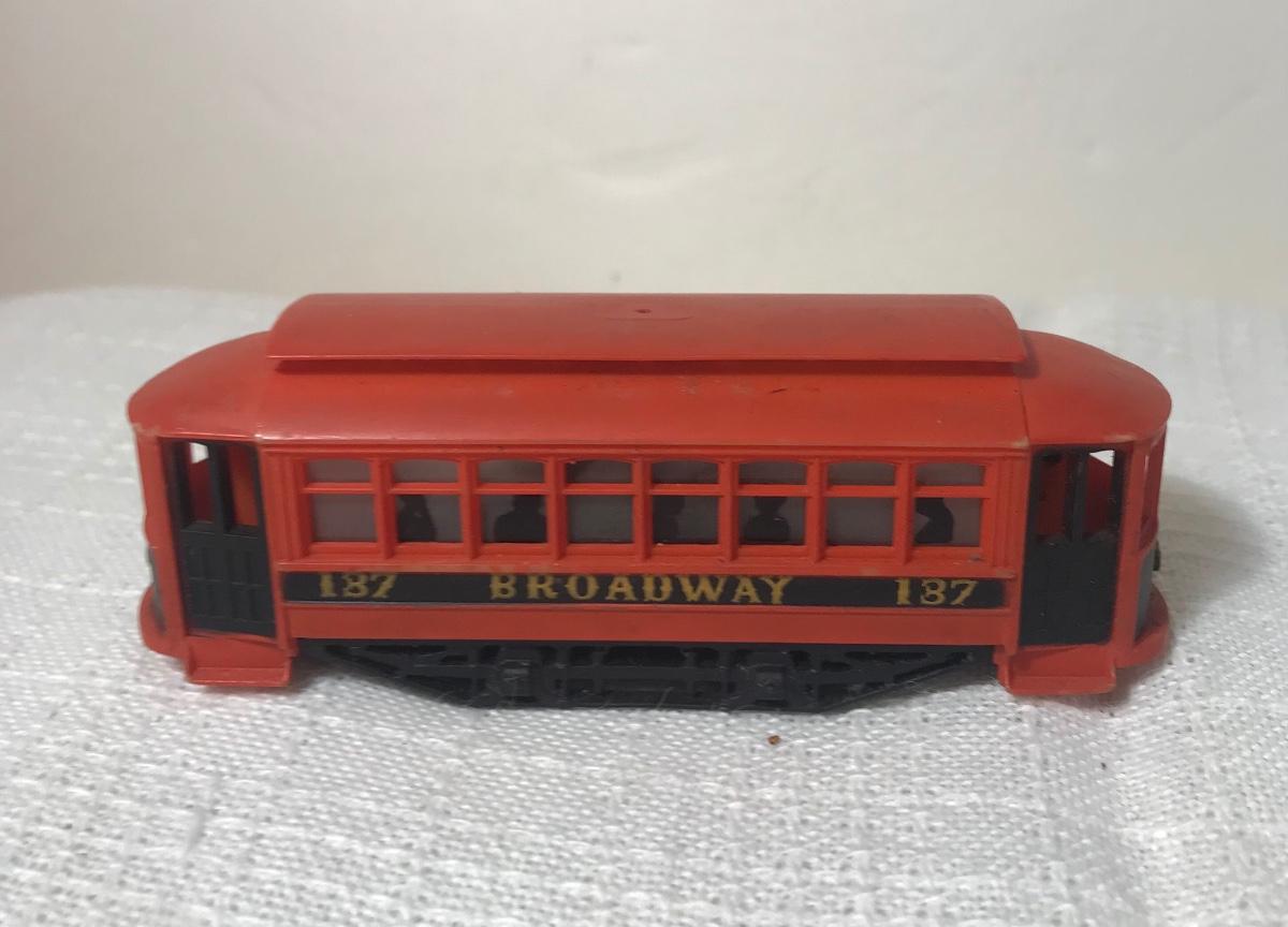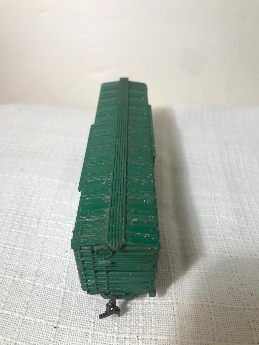 Two Vintage HO Train Cars & Trolley. Please see all pictures as they are the best representation of the items. The pictures show condition, measurements if taken, and what is included in the lot. Due to the large amount that we photograph and the time frame, we are not always able to take measurements. All items unless noted, are pre-owned and have been used, and are untested. Thank you.
