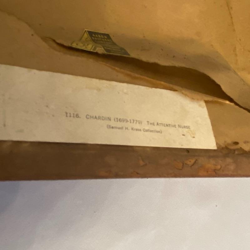 Hood and Chardin Art with stickers on back stating they are from Samuel H. Kress Collection and Mellon Collections. Both are prints of beautiful art embraced in wood framing measuring out to 13.5x15.5 Shipping Available.