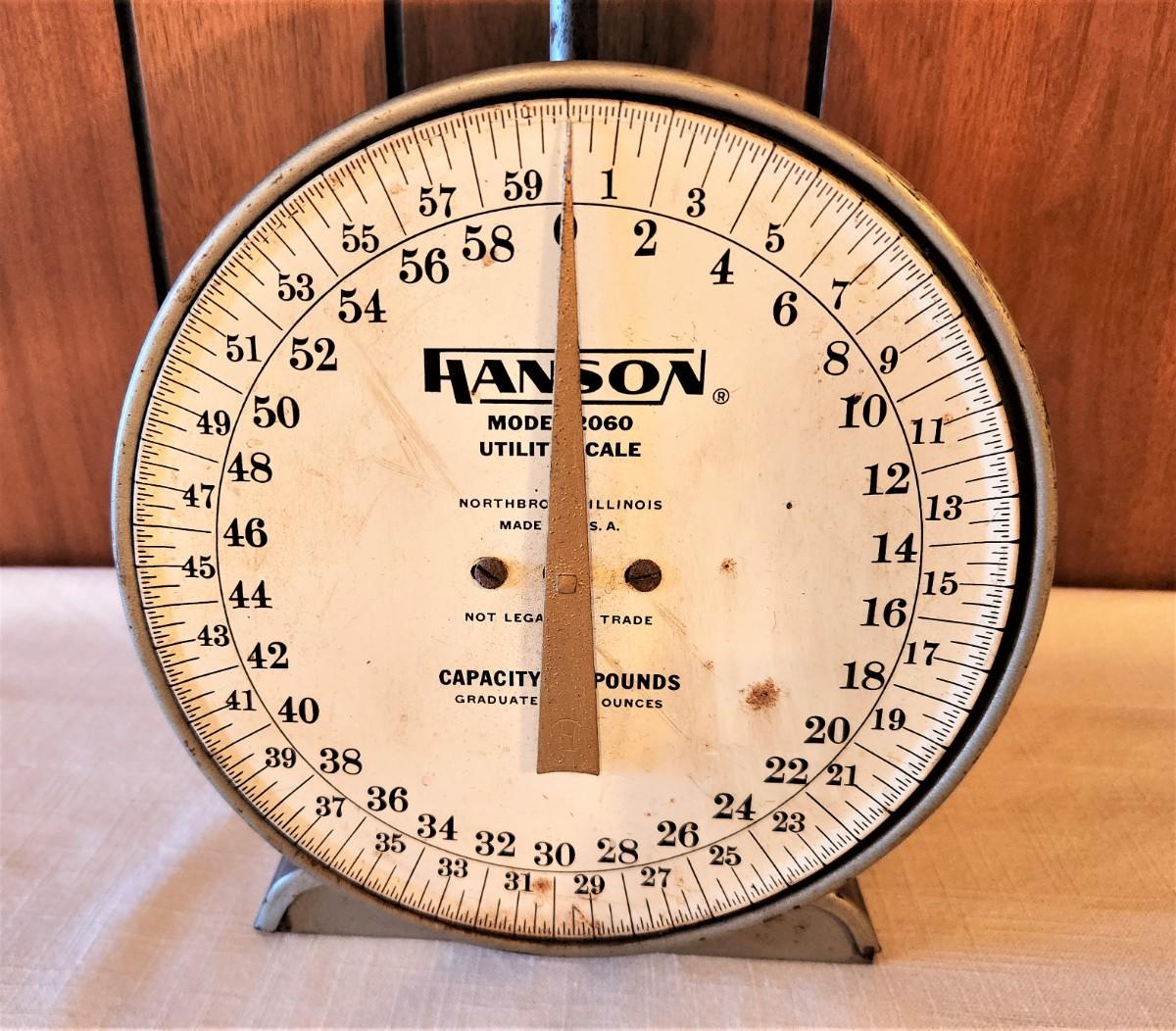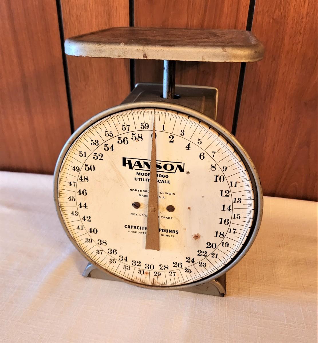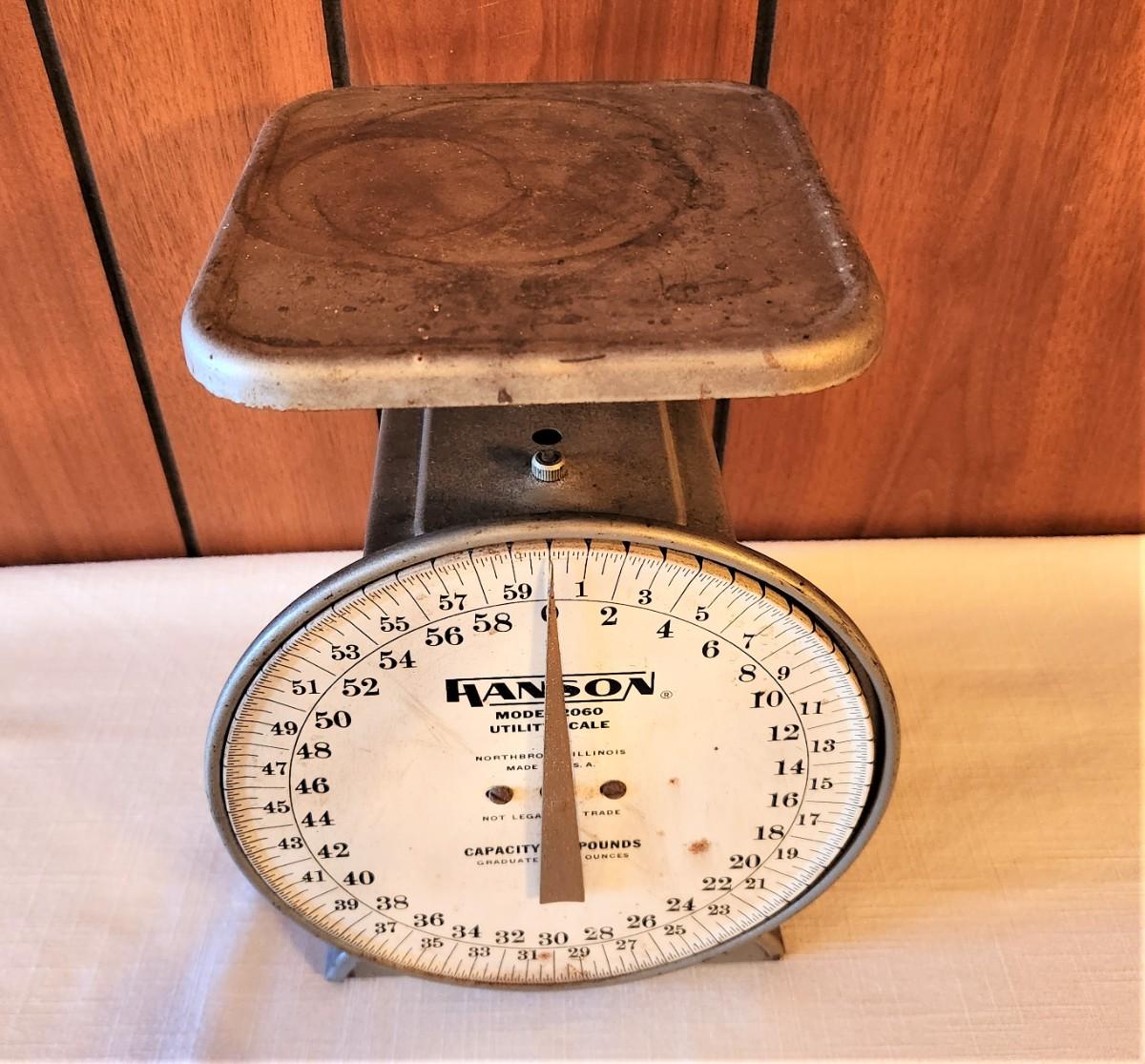 Nice vintage Hanson Scale - model 2060, 10" tall, has 60 pound capacity. Good looking - great display piece.