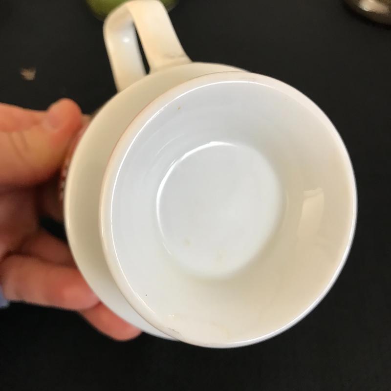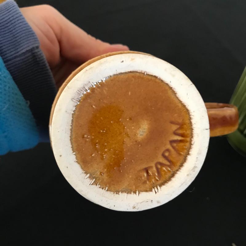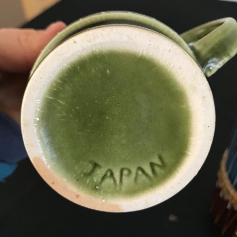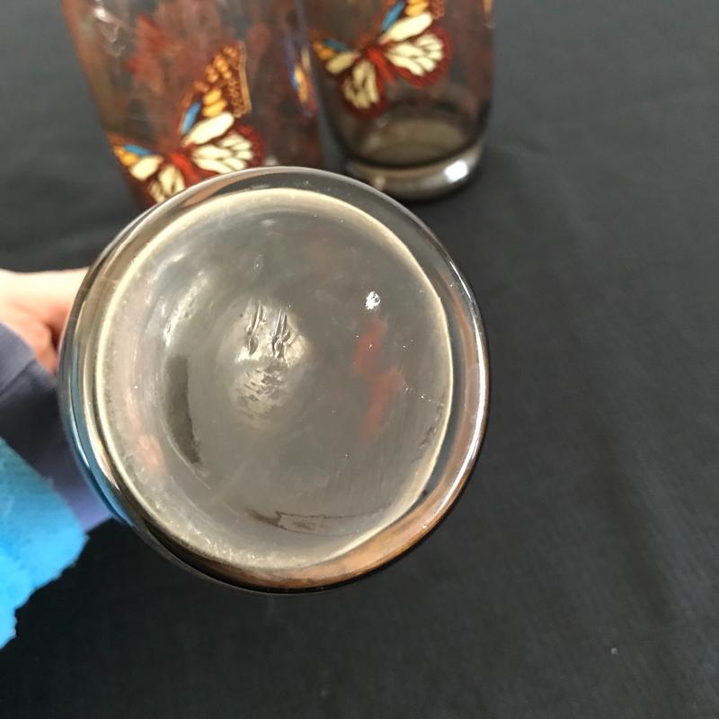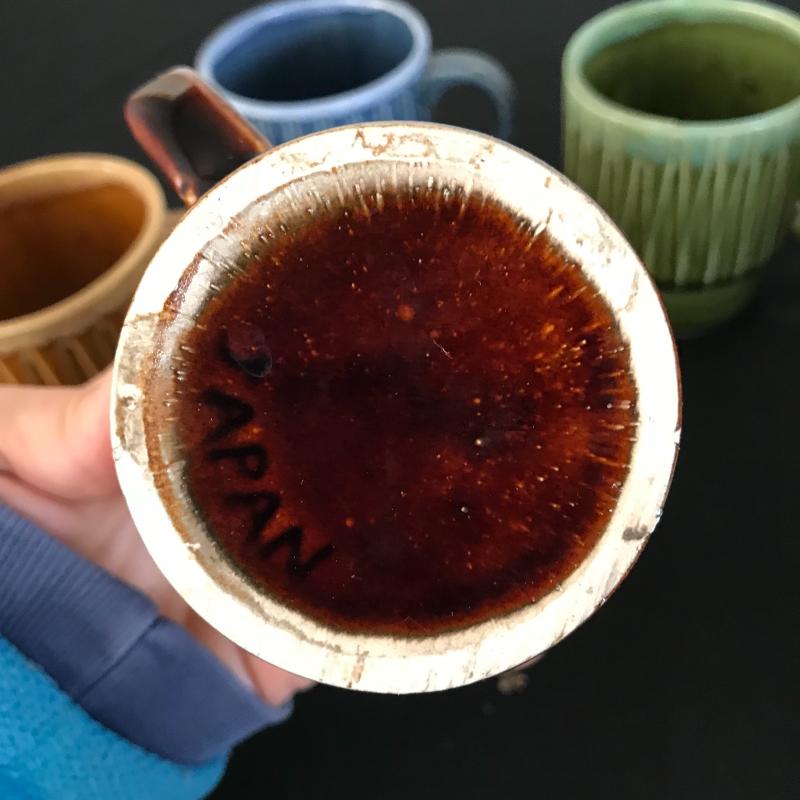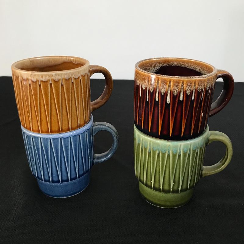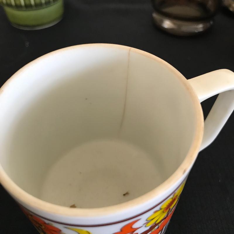Sweet set of four retro coffee mugs, one floral coffee mug (cracked but still in tact), and three butterfly drinking glasses. Shipping available or local pickup in Asheville, NC.