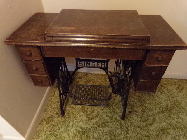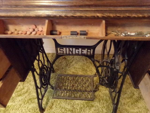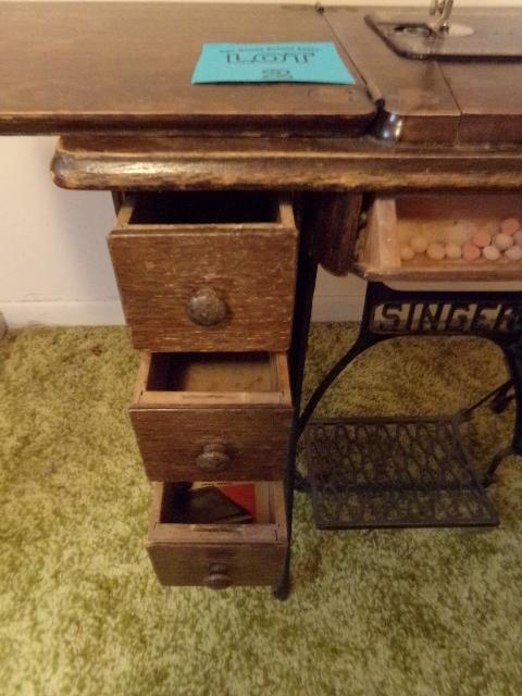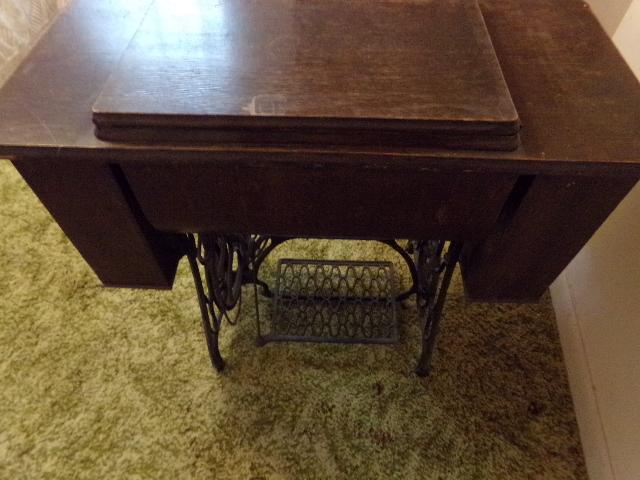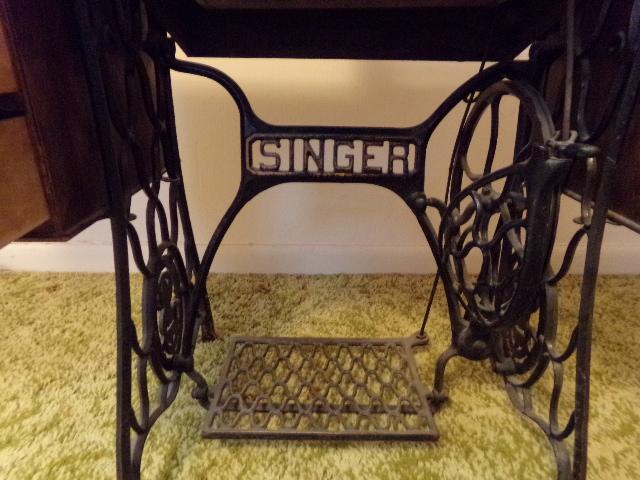 VINTAGE TREADLE SINGER SEWING MACHINE IN CABINET