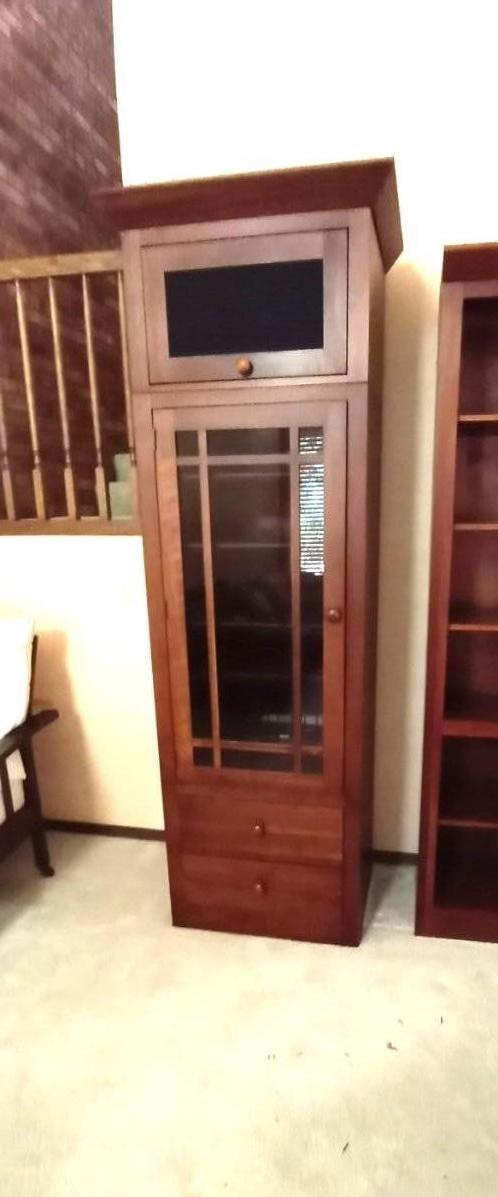 LOT 2 ETHAN ALLEN WOODEN GLASS FRONT CABINET