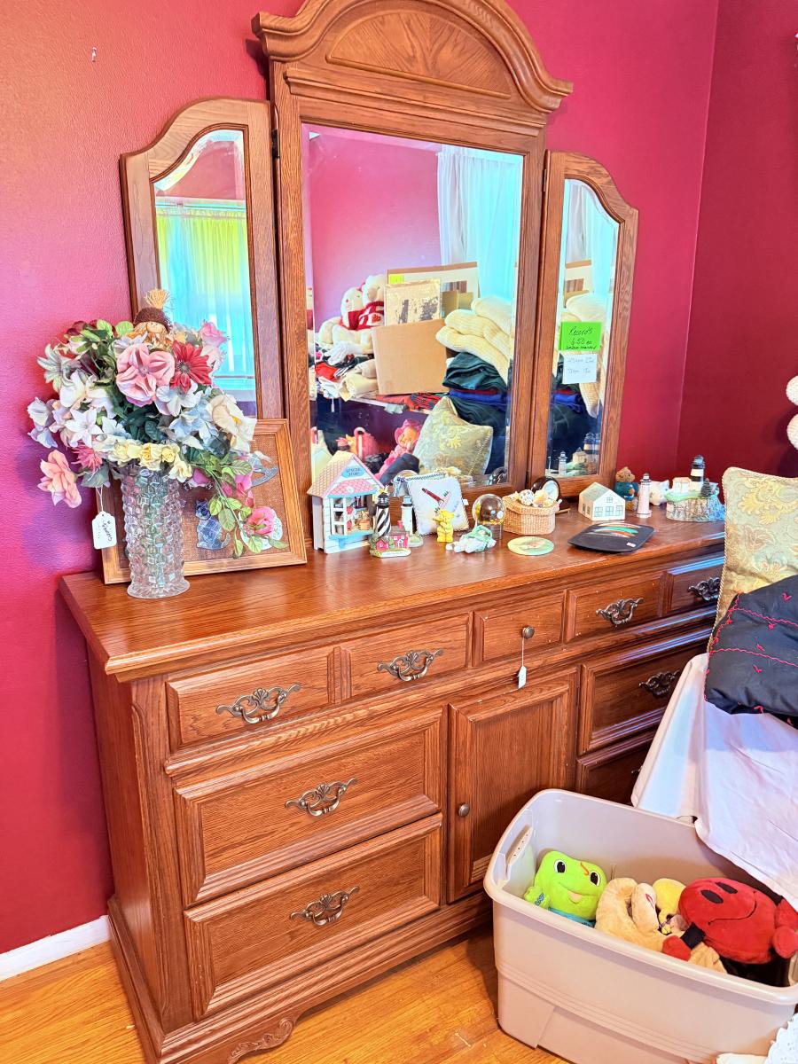 Lot 20; Mirrored Dresser, blankets & more