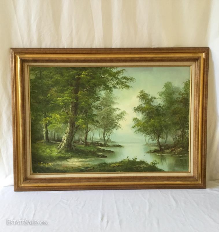 Framed and signed l. Cafieri painting on canvas. 44"L X 32"W.