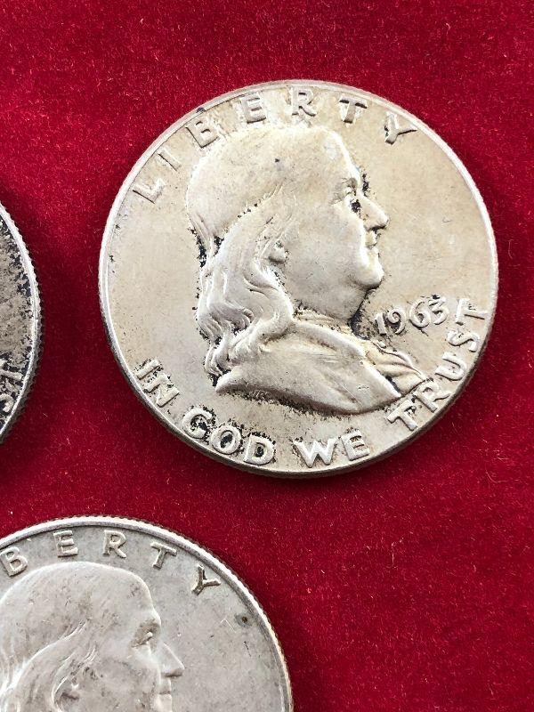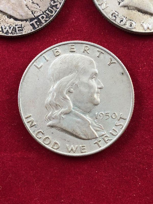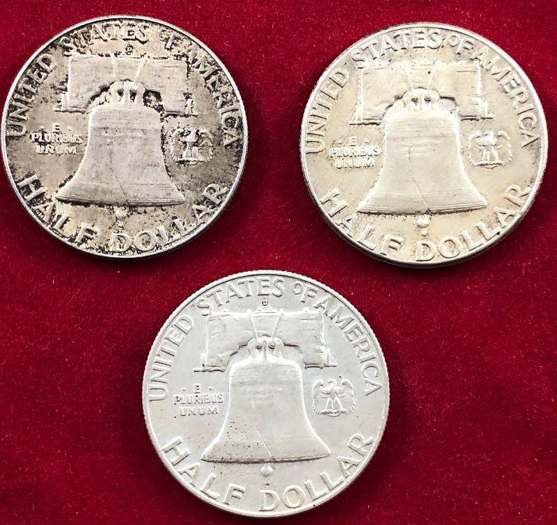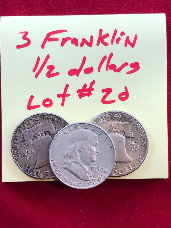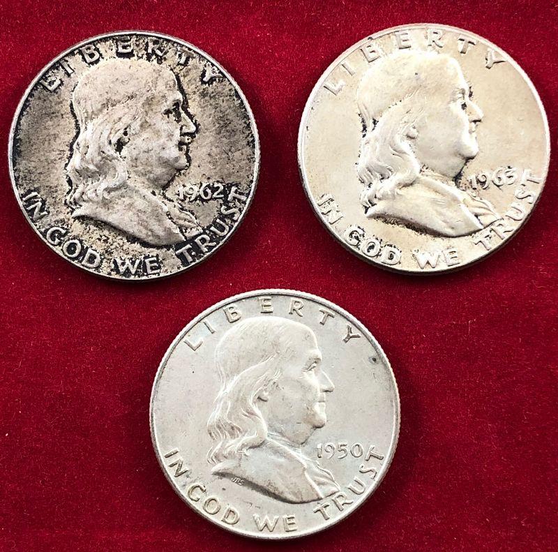 Lot #20 3 Franklin Half Dollars 90% Silver Coins