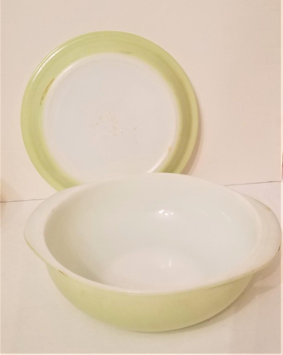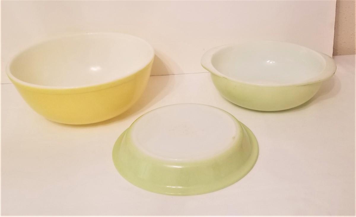 You get all you see here - primary bowl in Yellow (404), light green pie dish (8.5" - 209), and 2 Qt. Bowl, light green (024). All have been gently used. No chips.