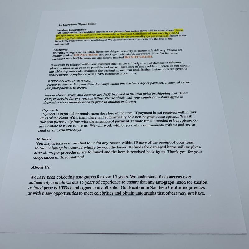 ALL items shipped or local pick up in Asheville. No item in this auction has been verified or authenticated by any other means other than what was provided by the family and is being offered as we have found them. Some of the boxes of cards say "Complete set" but we have not verified. Purchase at your own discretion. Absolutely no guarantees and no returns or refunds given if proven to be false. Most autographed items appear to have been purchased on eBay and most cards through authorized sellers.