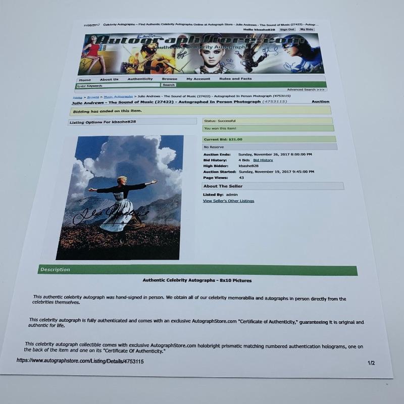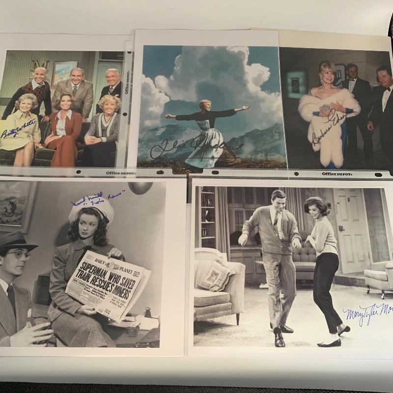 These actresses have had long successful careers. The lot includes our favorite Ms Betty White! As well as , Angela Lansbury, Julie Andrews, Mitzi Gaynor, Debbie Reynolds, Mary Tyler Moore, Noel Neill, and Barbara Eden. All have their COA.