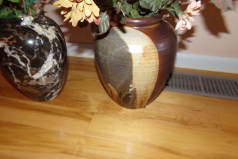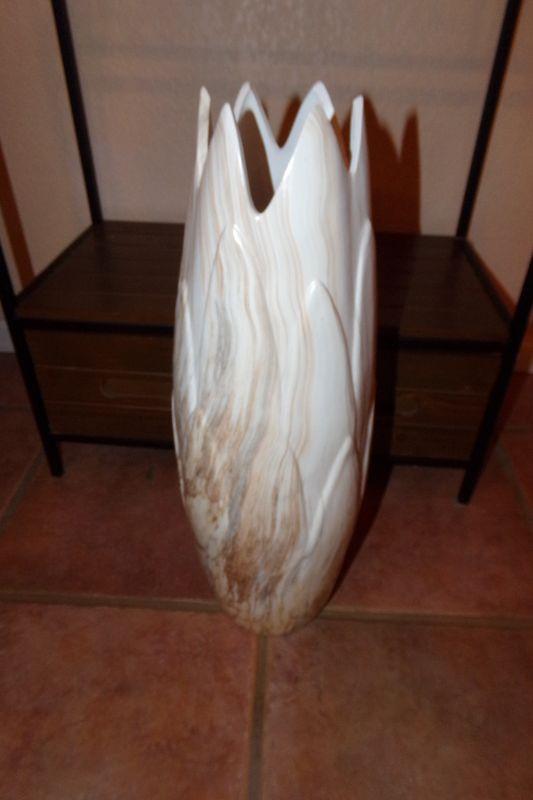 TALL CLAY VASE WITH JAGGED EDGE IS 20" TALL