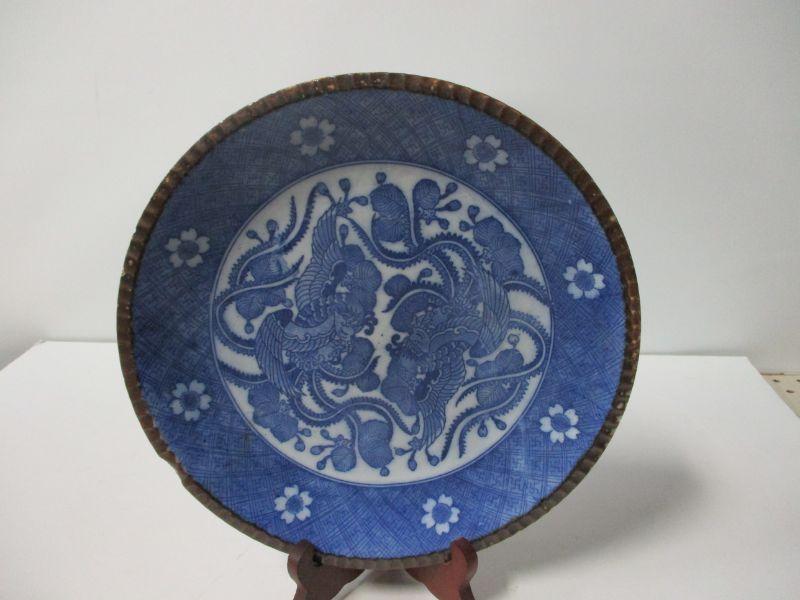 Lot 20 - Vintage Blue and White Porcelain Plate Love Birds Scalloped Edge 10"
