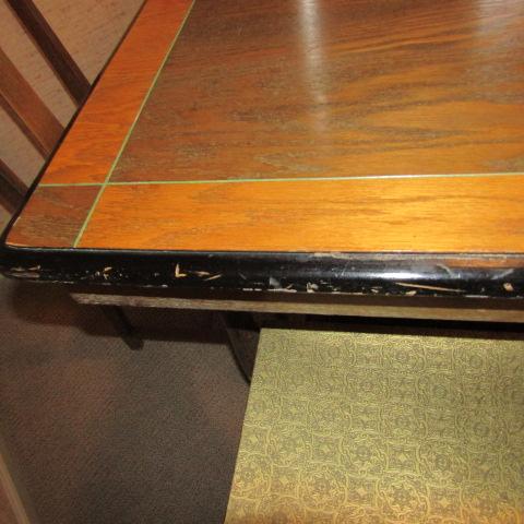 IT NEEDS SOME TLC. THE EDGES HAVE SOME LOSS OF FINISH AND MOST OF THE WOOD LOOKS DRY.