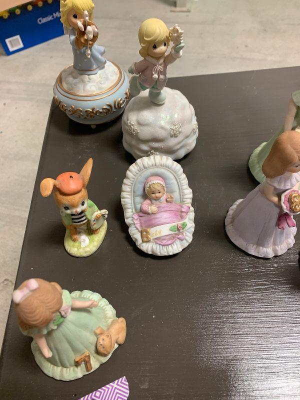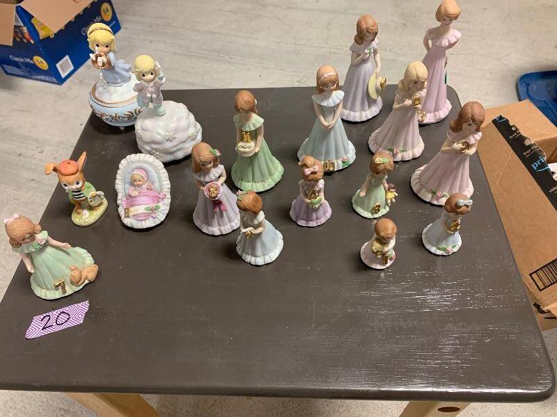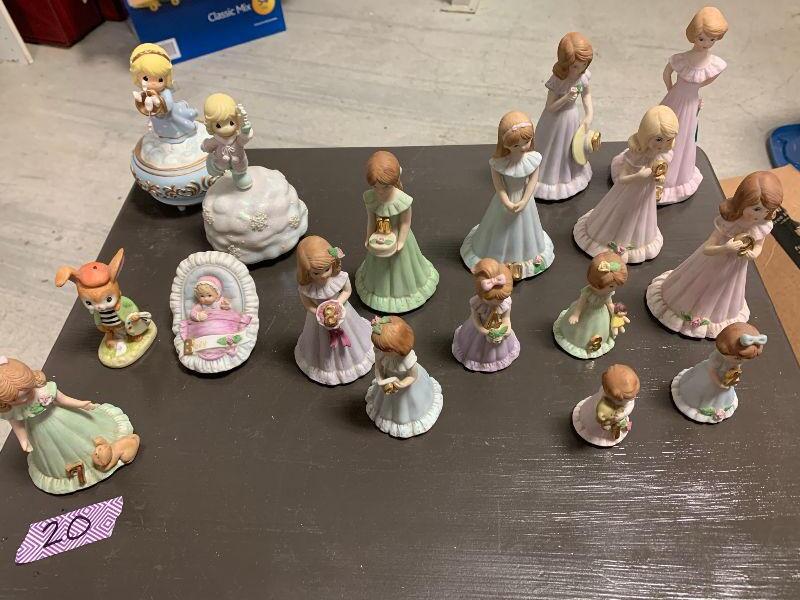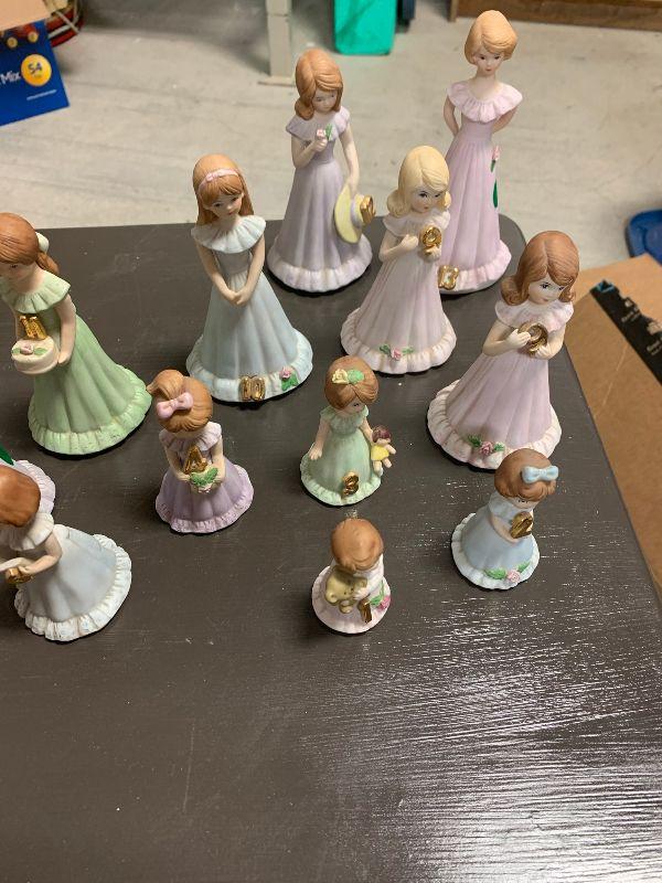 Growing up Birthday Girl Figurines ages baby - 4 years, 6 - 13 years. 2 x #9. Missing some numbers. Also 2 music boxes, 1 statue, and rabbit. 17 total