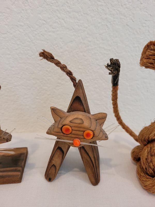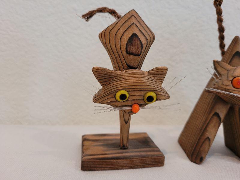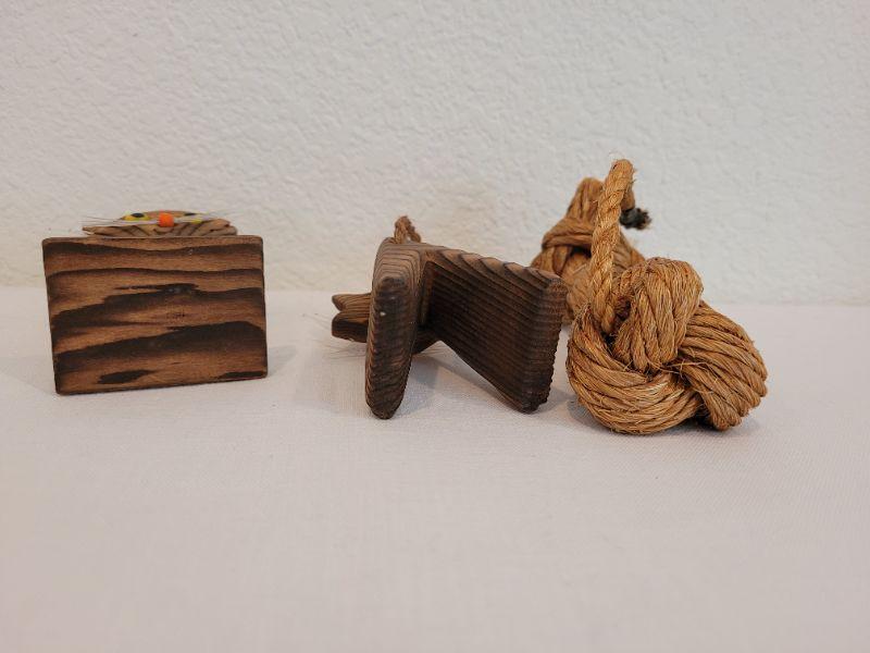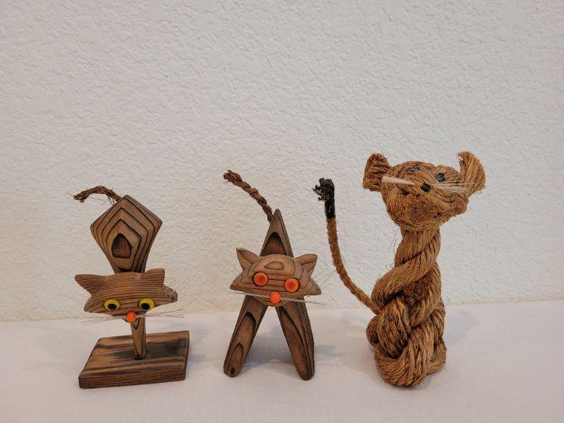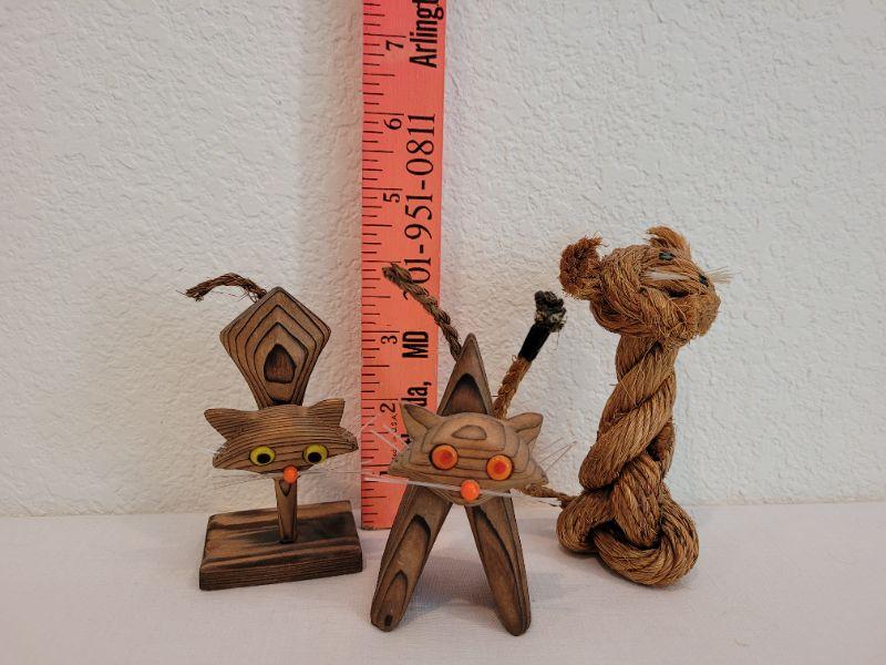 Lot 20: Vintage Mid Century Wood & Rope Cat Lot