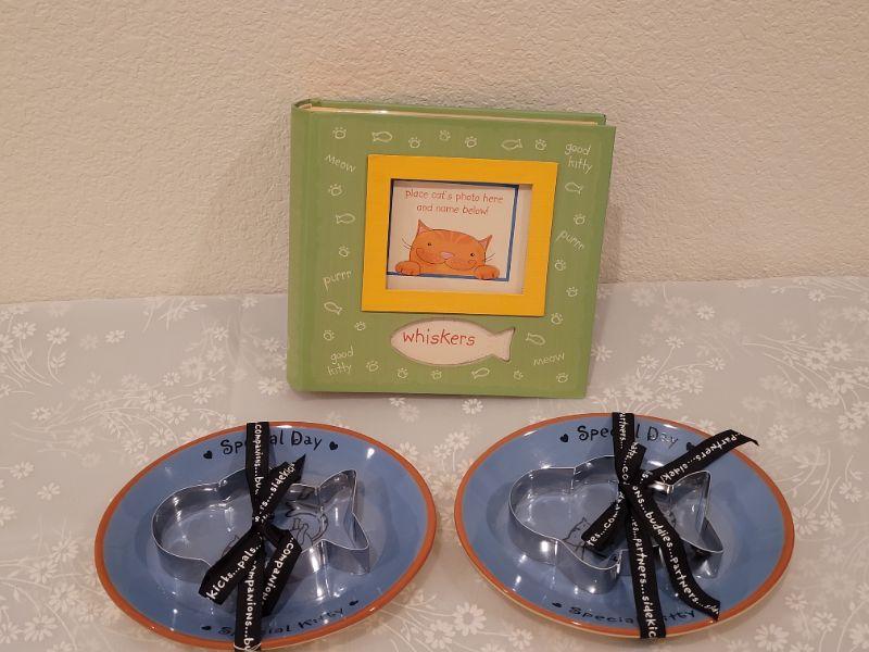 Lot 20: (2) New Kitty Plates with Cookie Cutters and Cat Memory Album