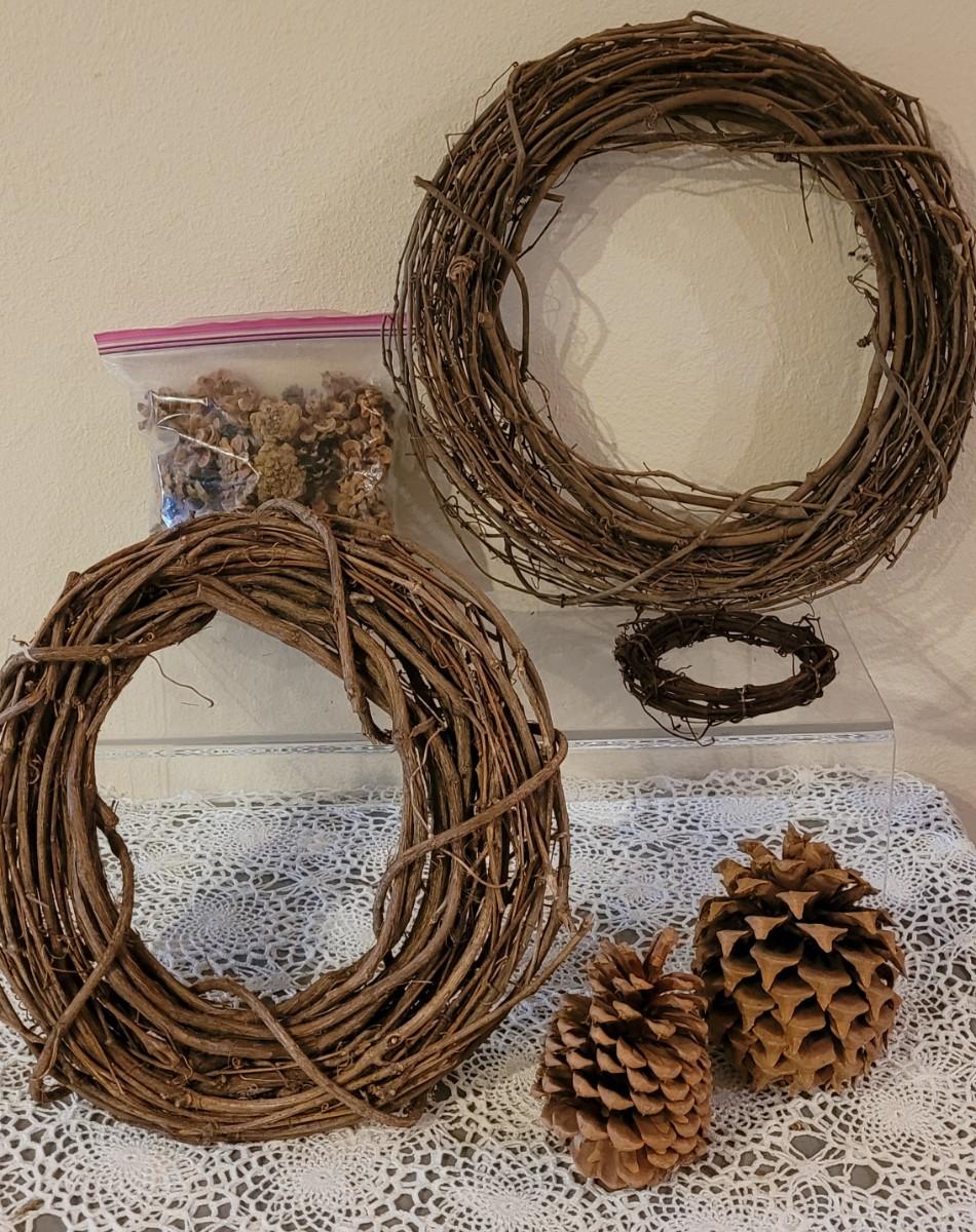 Lot 20: Large & Small Pine Cones and Grapevine Wreaths
