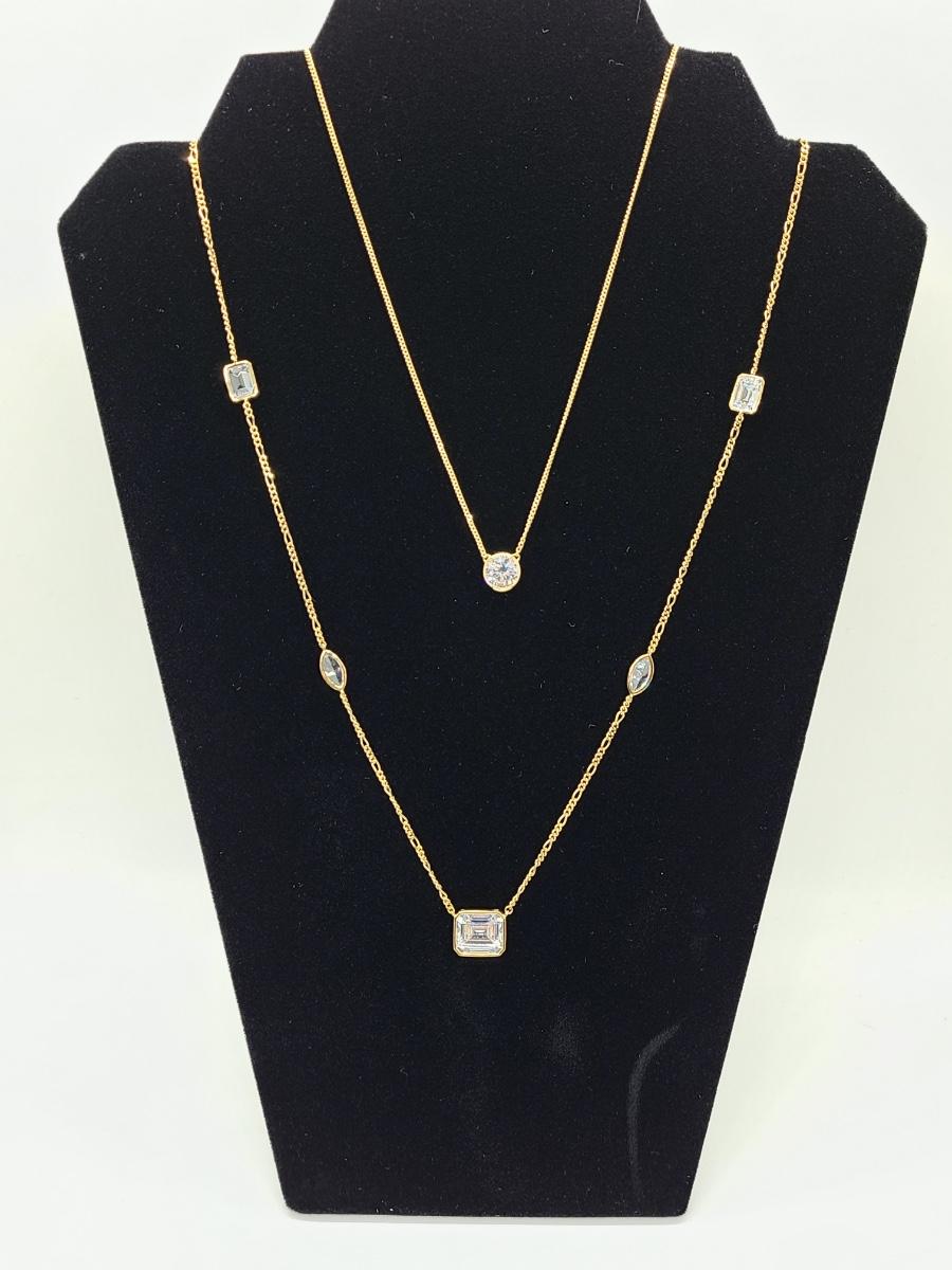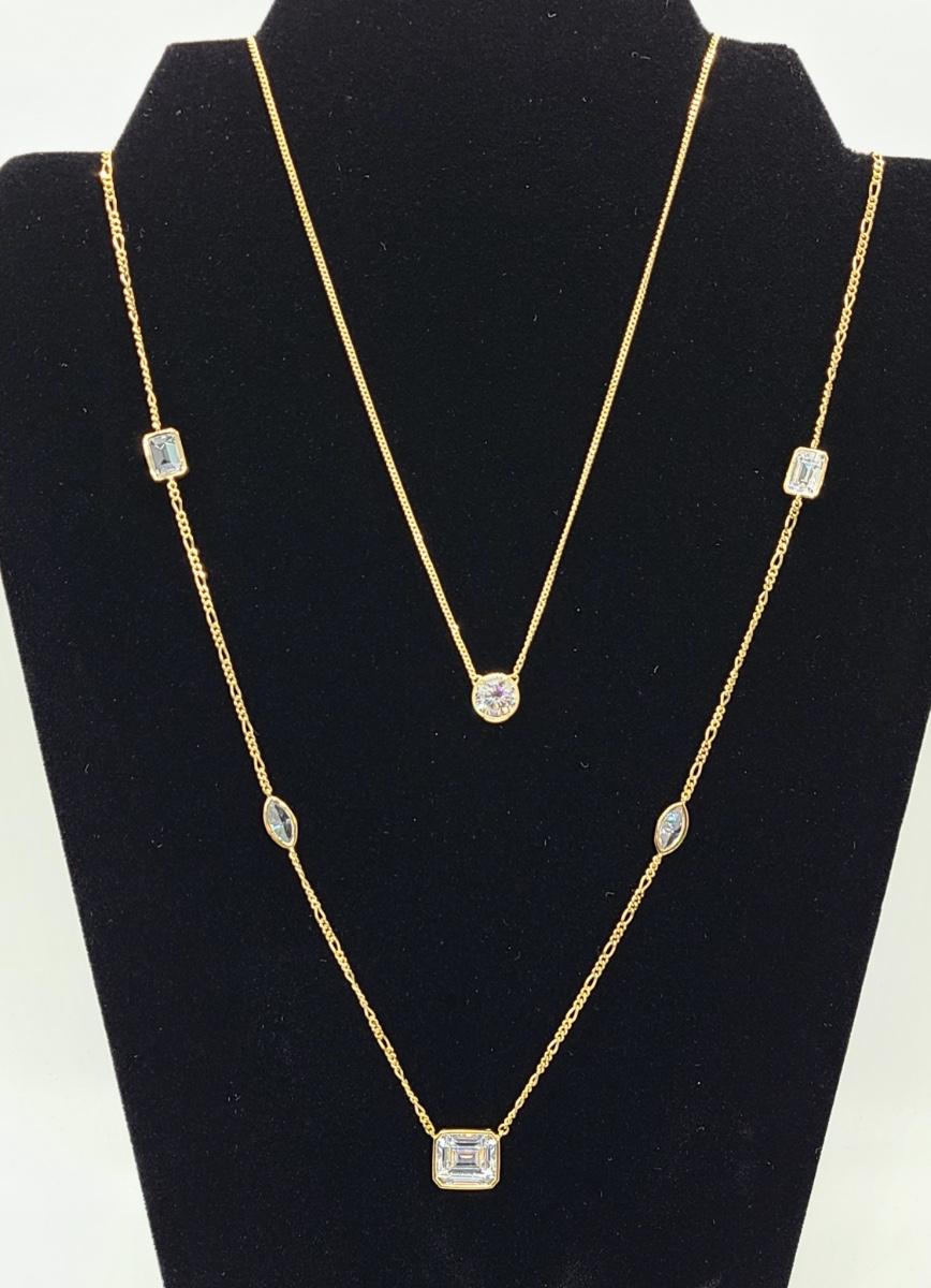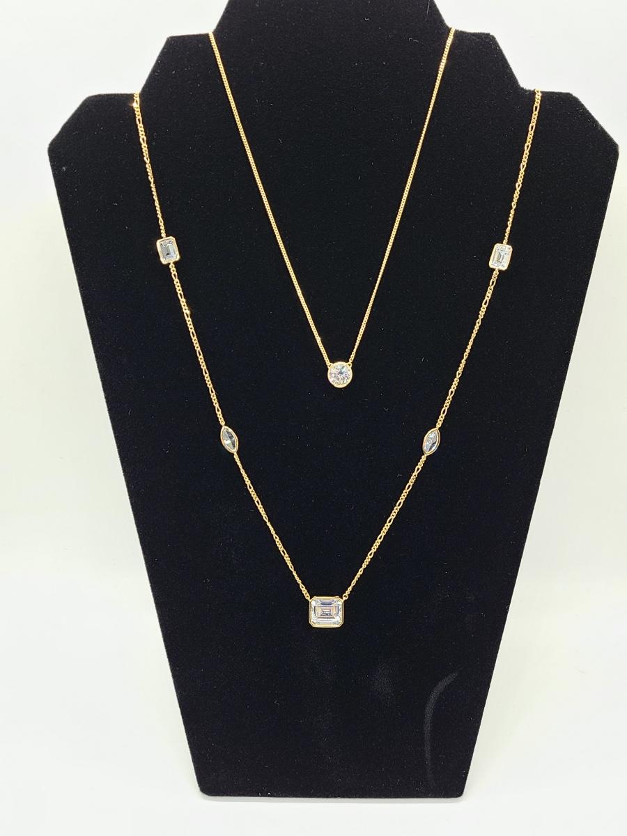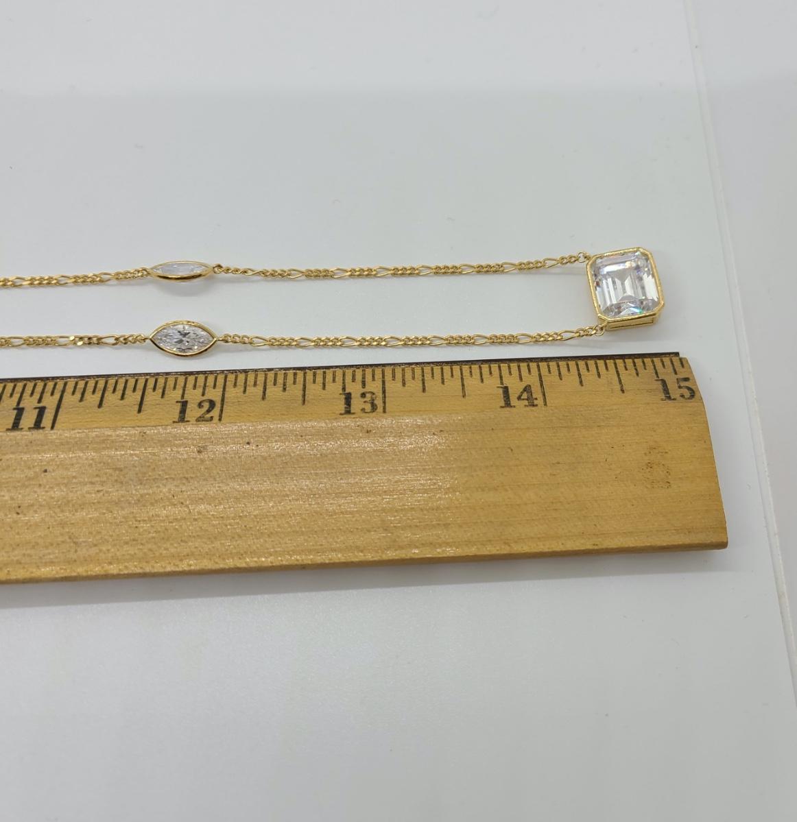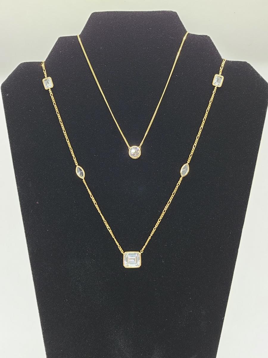 This lot is for two necklaces that look stunning together or alone. Perfect for layering! The first is a TOVA 925 gold vermeil necklace with brilliant CZ pendant and the other is a TOVA Necklace, with Diamonique 925 gold vermeil. The pictures show condition, measurements if taken, and what is included in the lot. Due to the large amount that we photograph and the time frame, we are not always able to take measurements. All items unless noted, are pre-owned and have been used, and are untested. Thank you