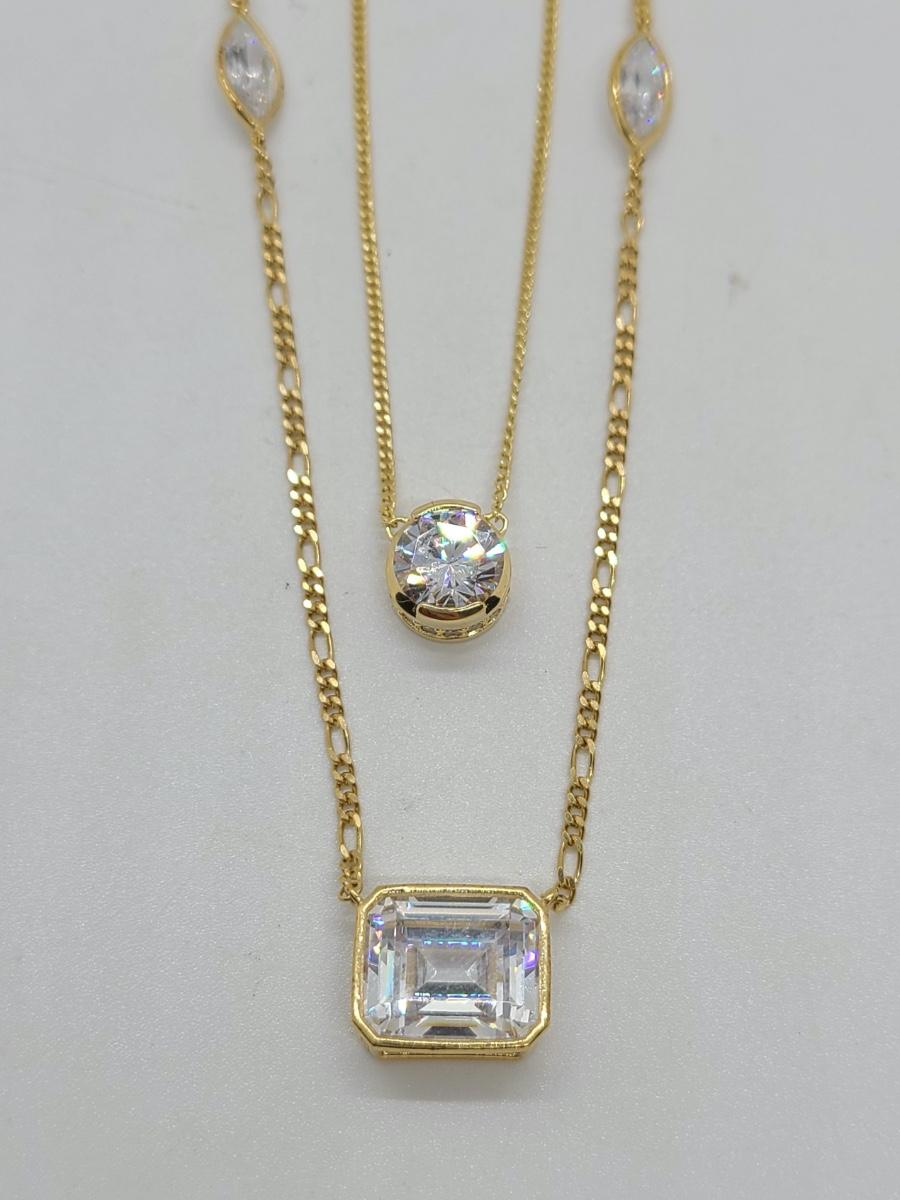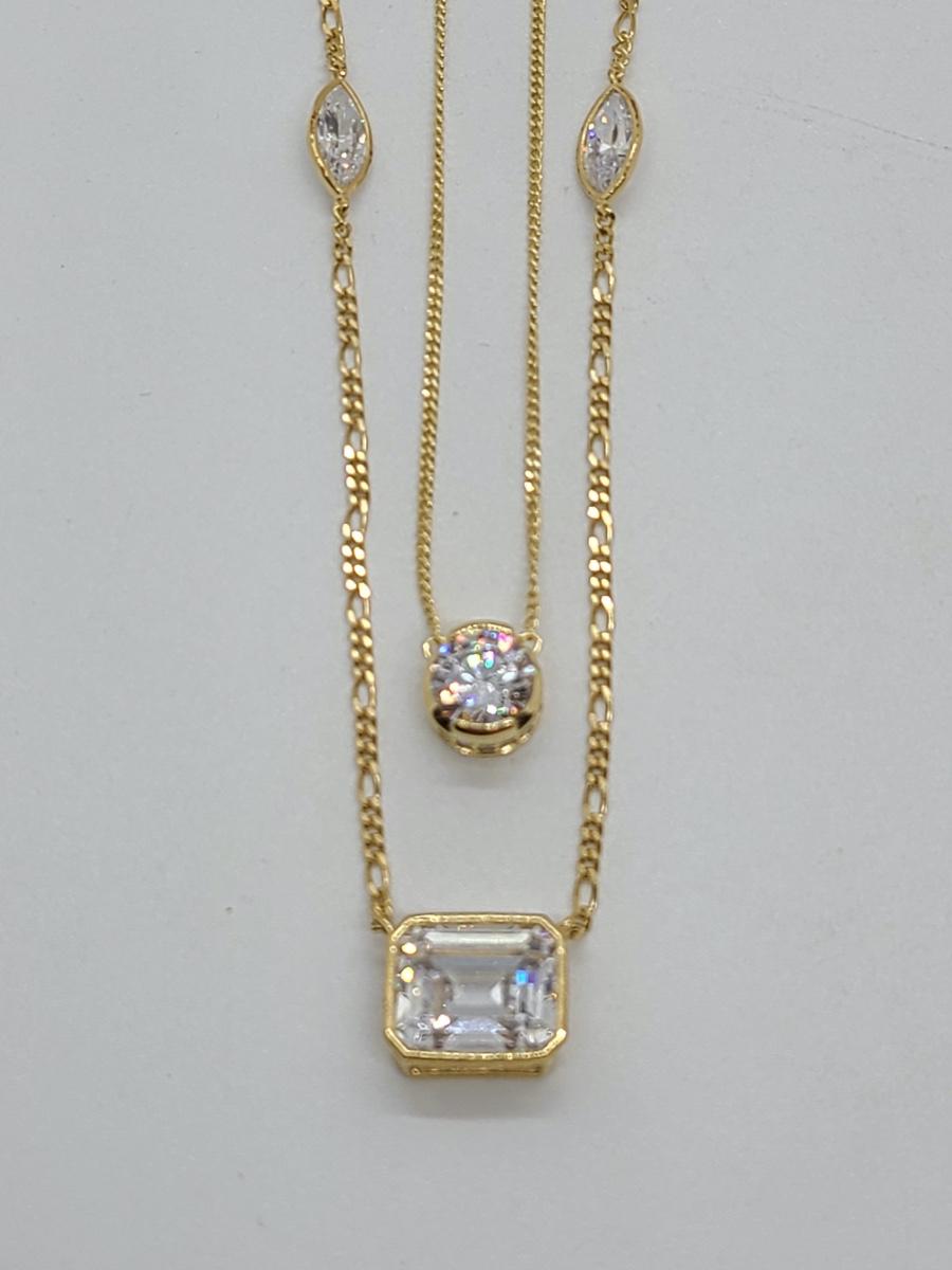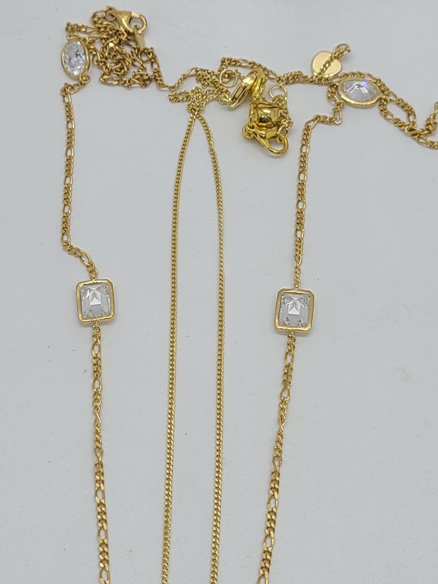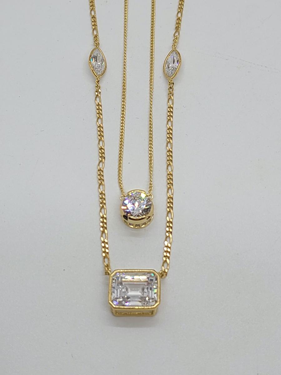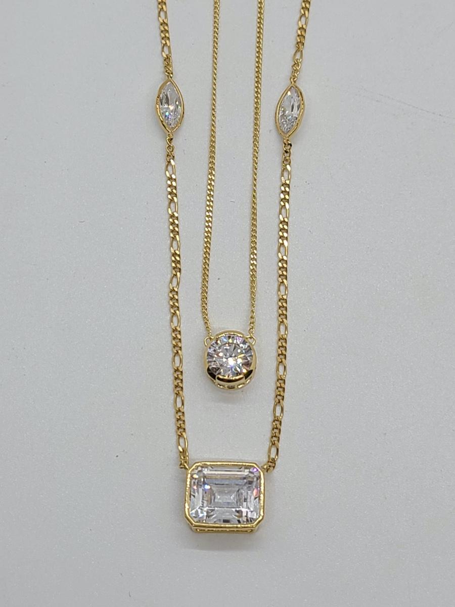 This lot is for two necklaces that look stunning together or alone. Perfect for layering! The first is a TOVA 925 gold vermeil necklace with brilliant CZ pendant and the other is a TOVA Necklace, with Diamonique 925 gold vermeil. The pictures show condition, measurements if taken, and what is included in the lot. Due to the large amount that we photograph and the time frame, we are not always able to take measurements. All items unless noted, are pre-owned and have been used, and are untested. Thank you