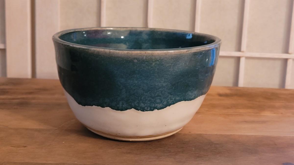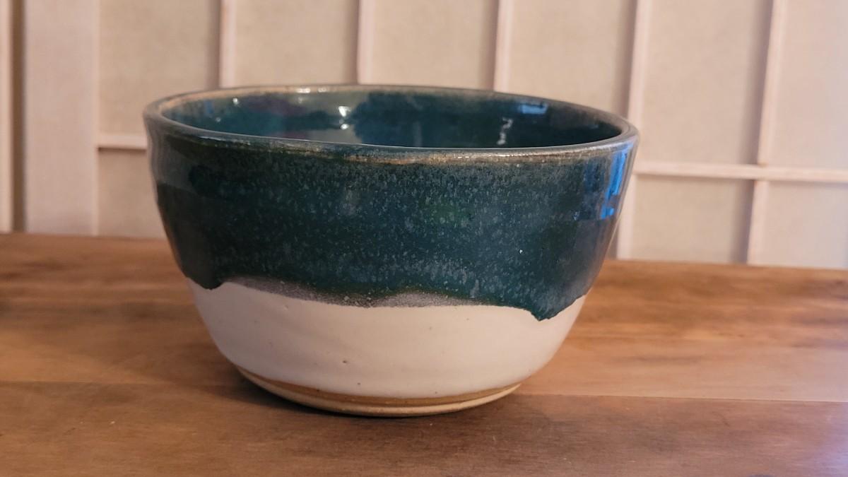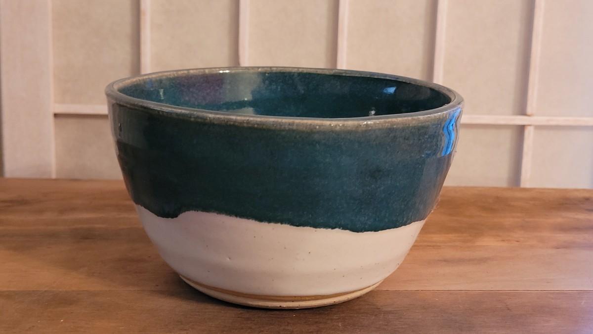 Lot 20: Vintage Signed White & Blue Pottery Bowl