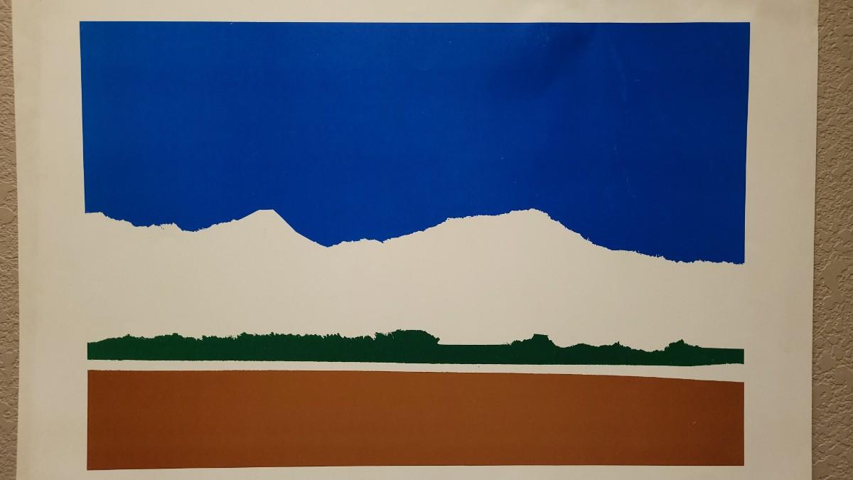 This lot features a Vintage 1980's Graphic Design Poster Depicting the Mountian Range with the messaging "COLORADO-it's not too late". A great example of Early Environmental Graphic Fine Art. Unsigned and Undated. 23" x 17.5".