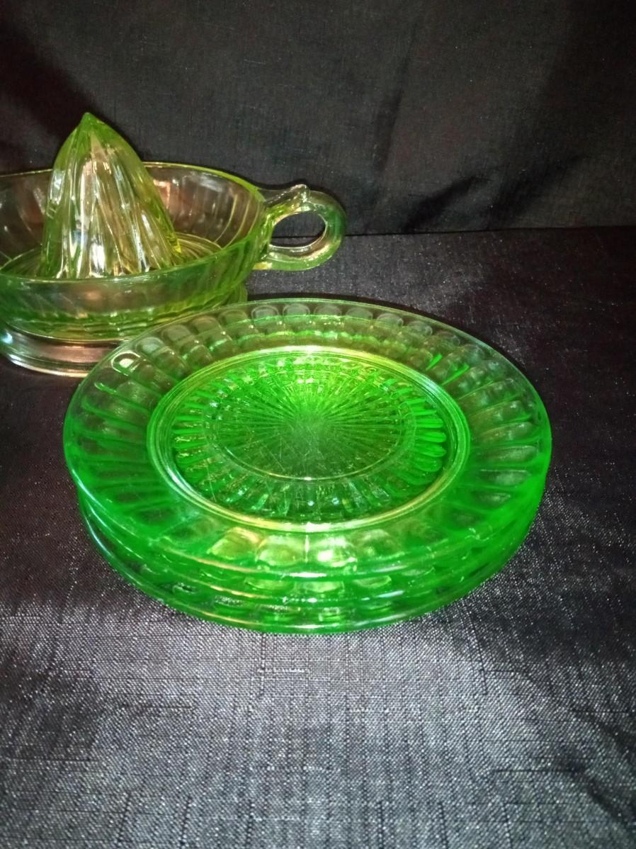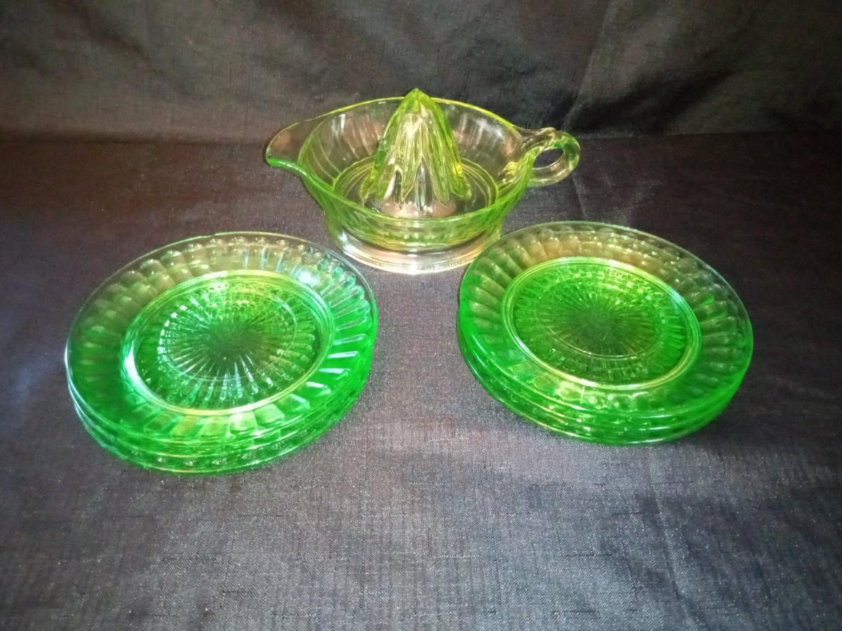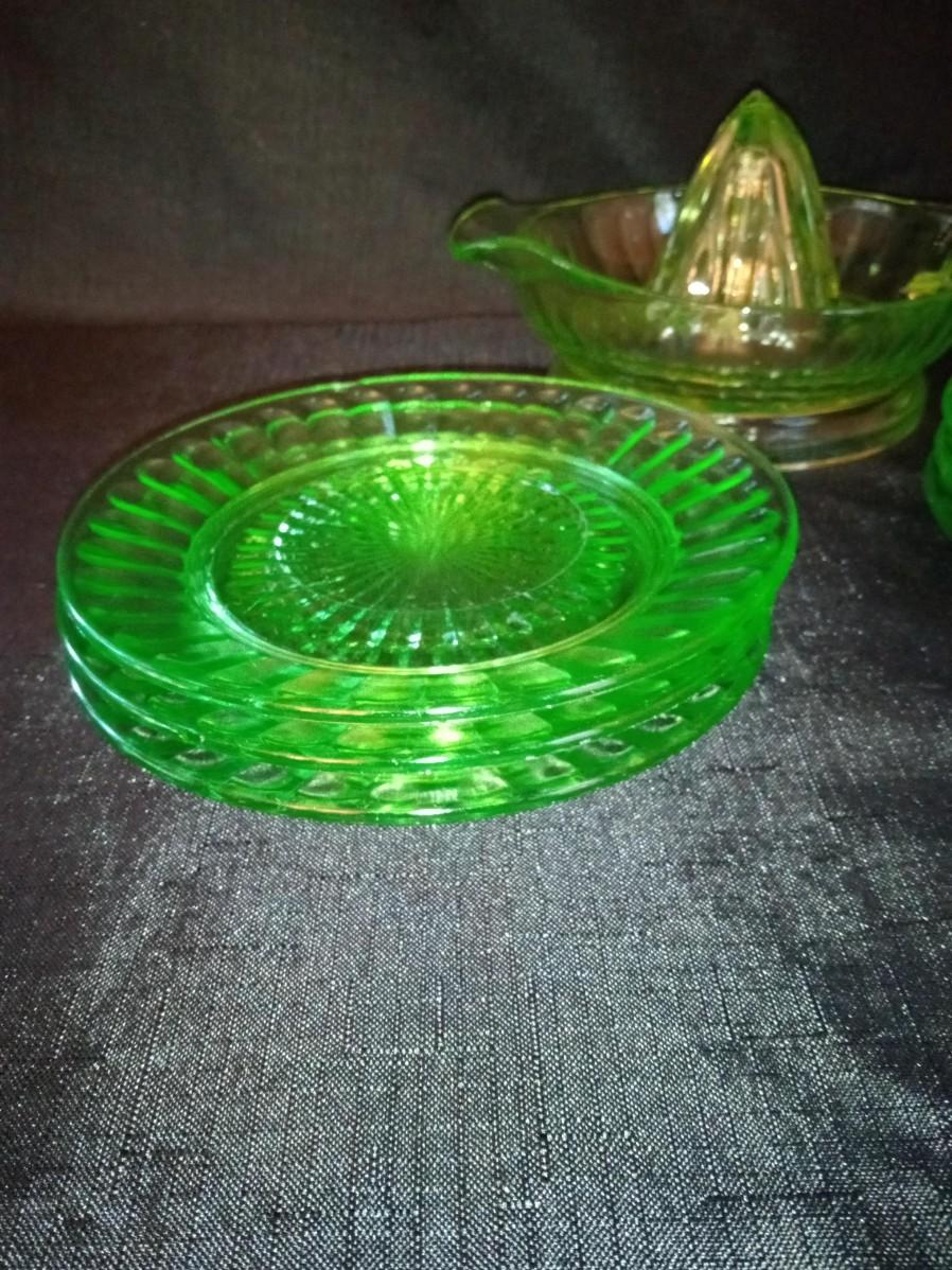 LOT 20 GREEN DEPRESSION GLASS