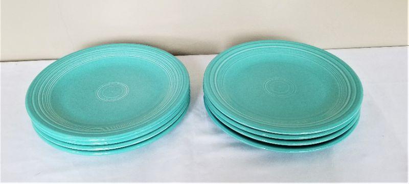 8 matching FIESTA dinner plates - Teal color - each measures 10.5" across. Used condition.