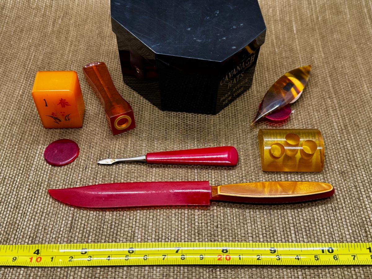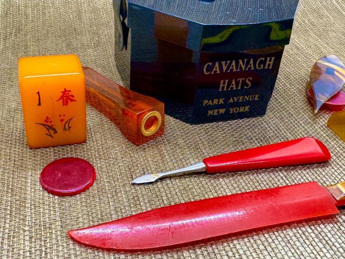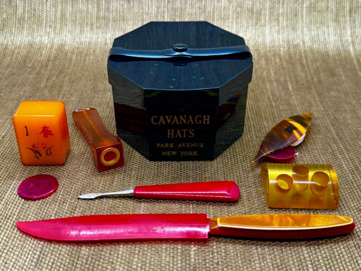 LOT 20 - Bakelite / Early Plastic Lot with Salesman's Sample Cavanagh Hat Box