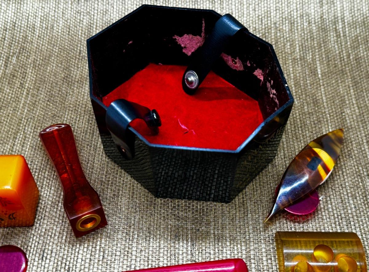 LOT 20 - Bakelite / Early Plastic Lot with a Salesman's Sample Miniature Cavanagh Hat Box of New York. Inner box has some wear on edges and on the felt. Please look closely at the photos as they are part of the description.