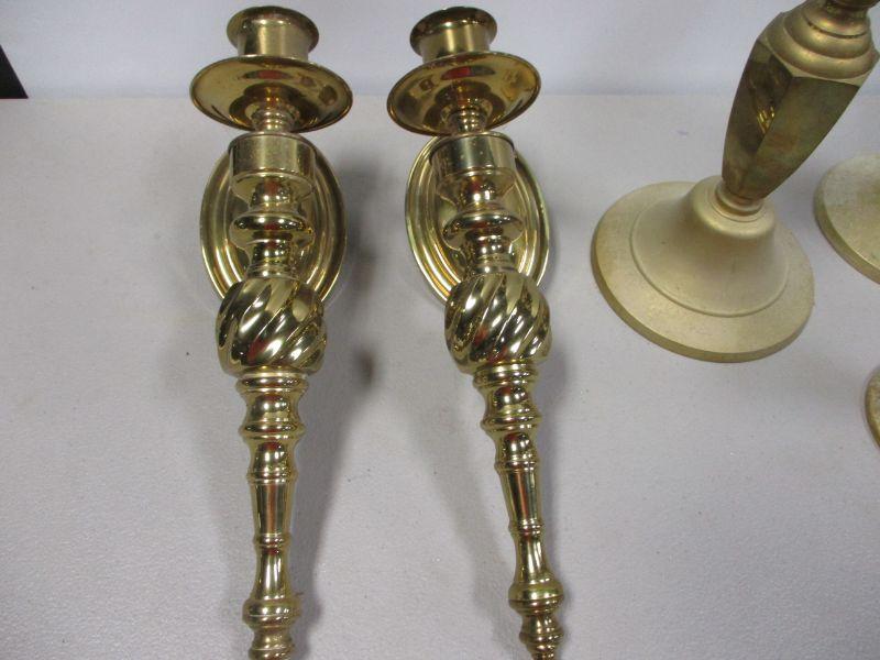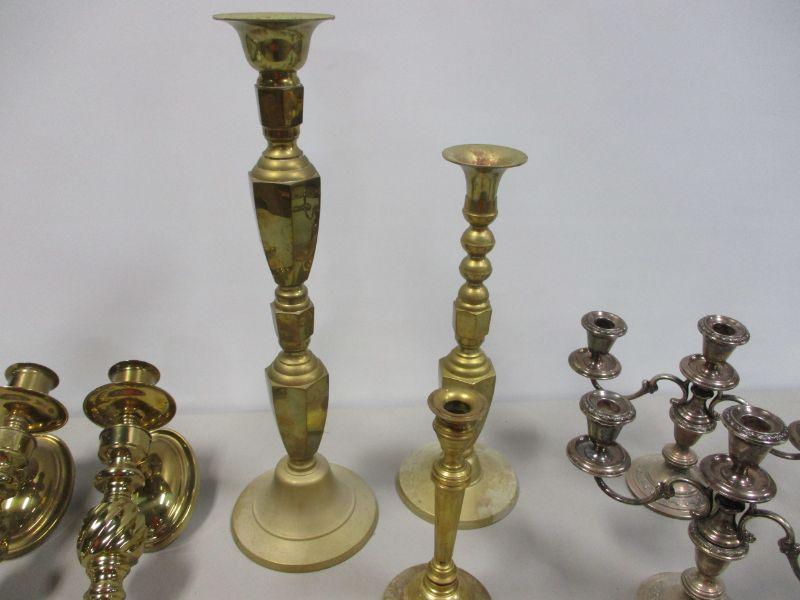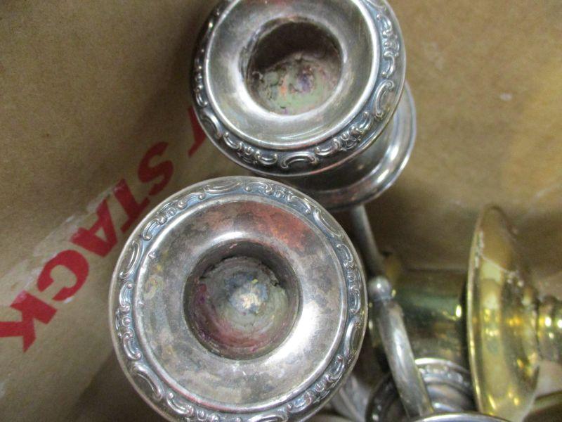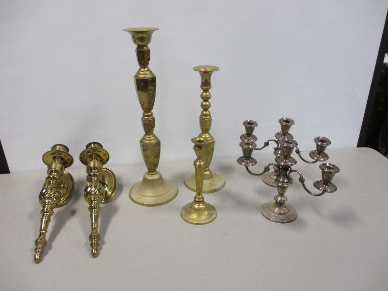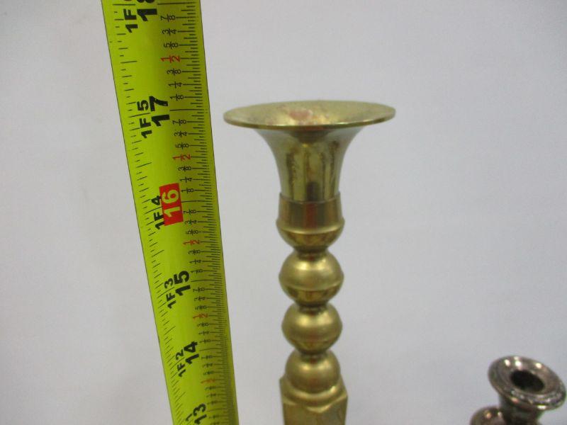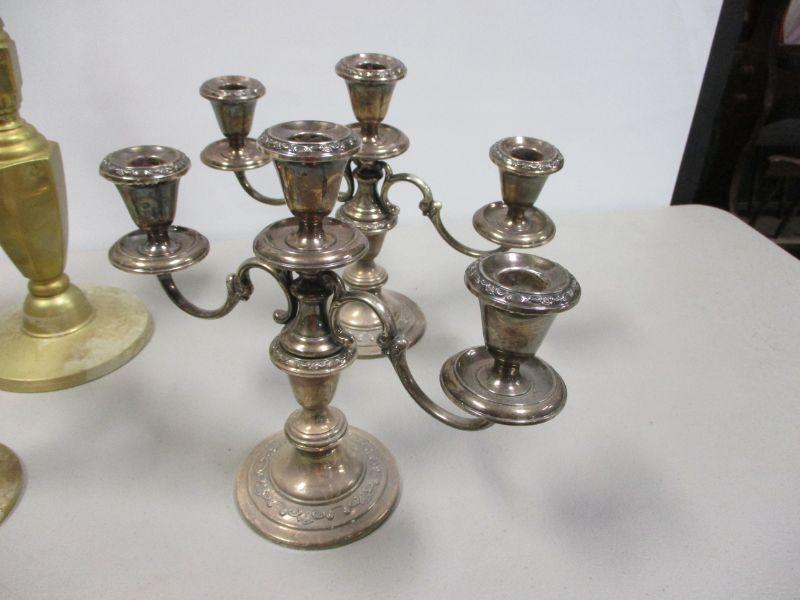 Lot 20 - Gorham Sterling #1130 Weighted Candelabras 10" and Brass Candle Holders