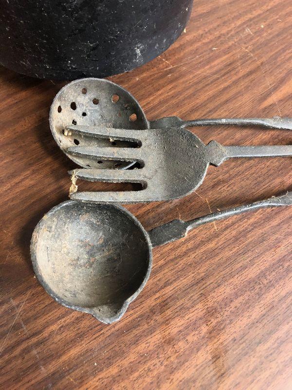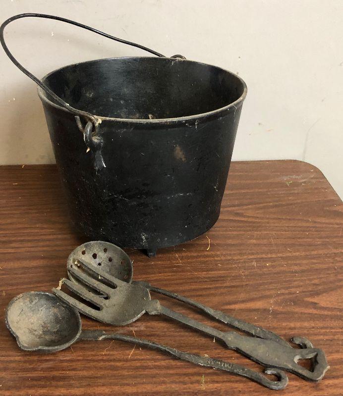 Lot # 20 Cast Iron Pot with Utensils