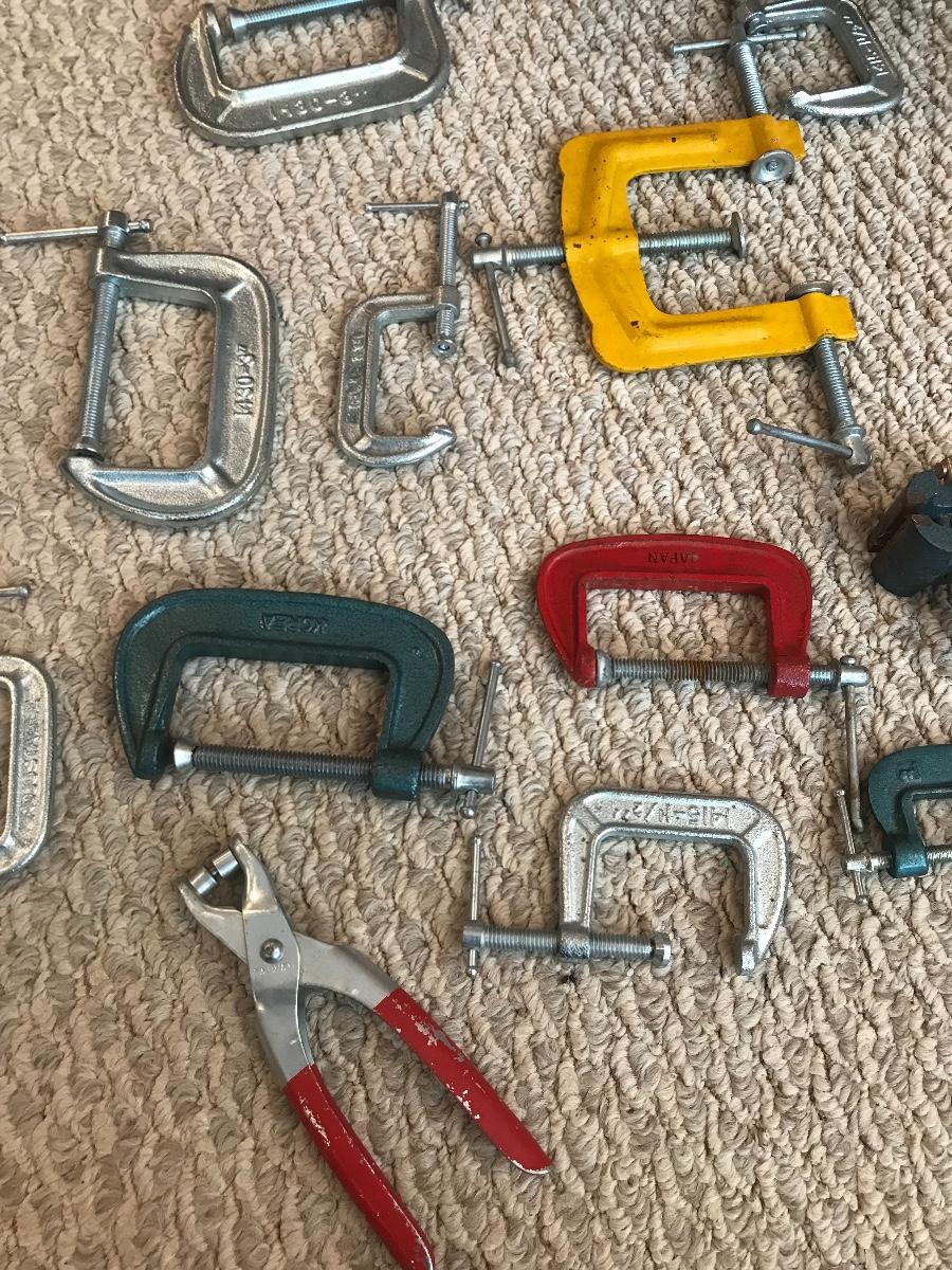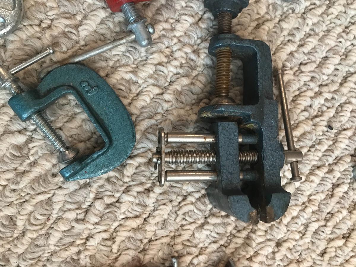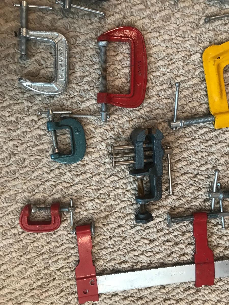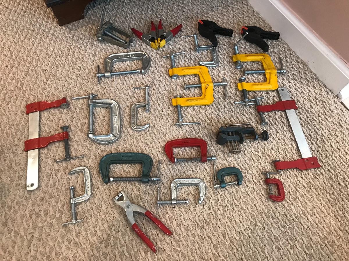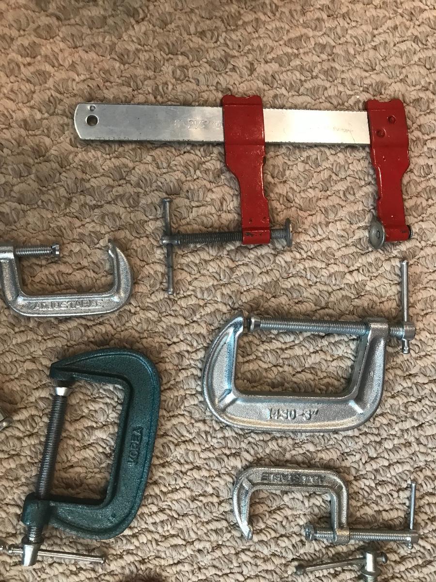 Good assortment of clamps. Please see all pictures as they are the best representation of the items. The pictures show condition, measurements if taken, and what is included in the lot. Due to the large amount that we photograph and the time frame, we are not always able to take measurements. All items unless noted, are pre-owned and have been used. If you purchased furniture, you must bring help. We do not allow one person to carry large furniture out on their own. Bring help, tools and a truck for the safety of our client’s homes, and your personal safety. Company policy. Thank you.