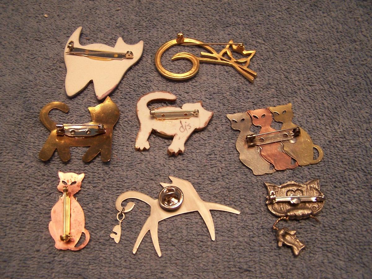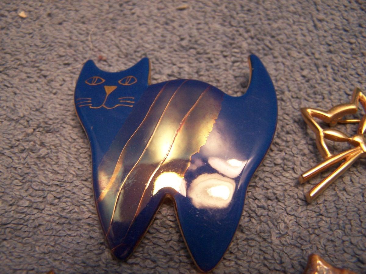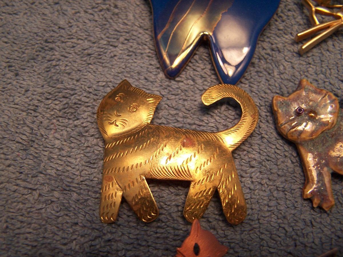 GREAT BUNCH OF COLLECTABLE COOL CAT PINS!!! THEY ARE MOSTLY METAL, 2 ARE CERAMIC... THE BLUE KITTY IS 1 3/4'' X 1 3/4''... LIGHT WEAR...
