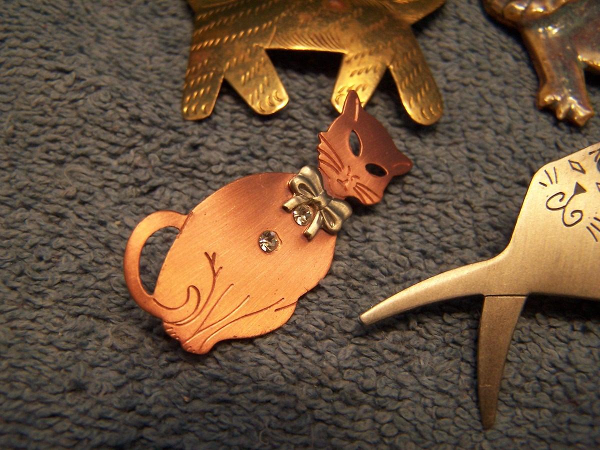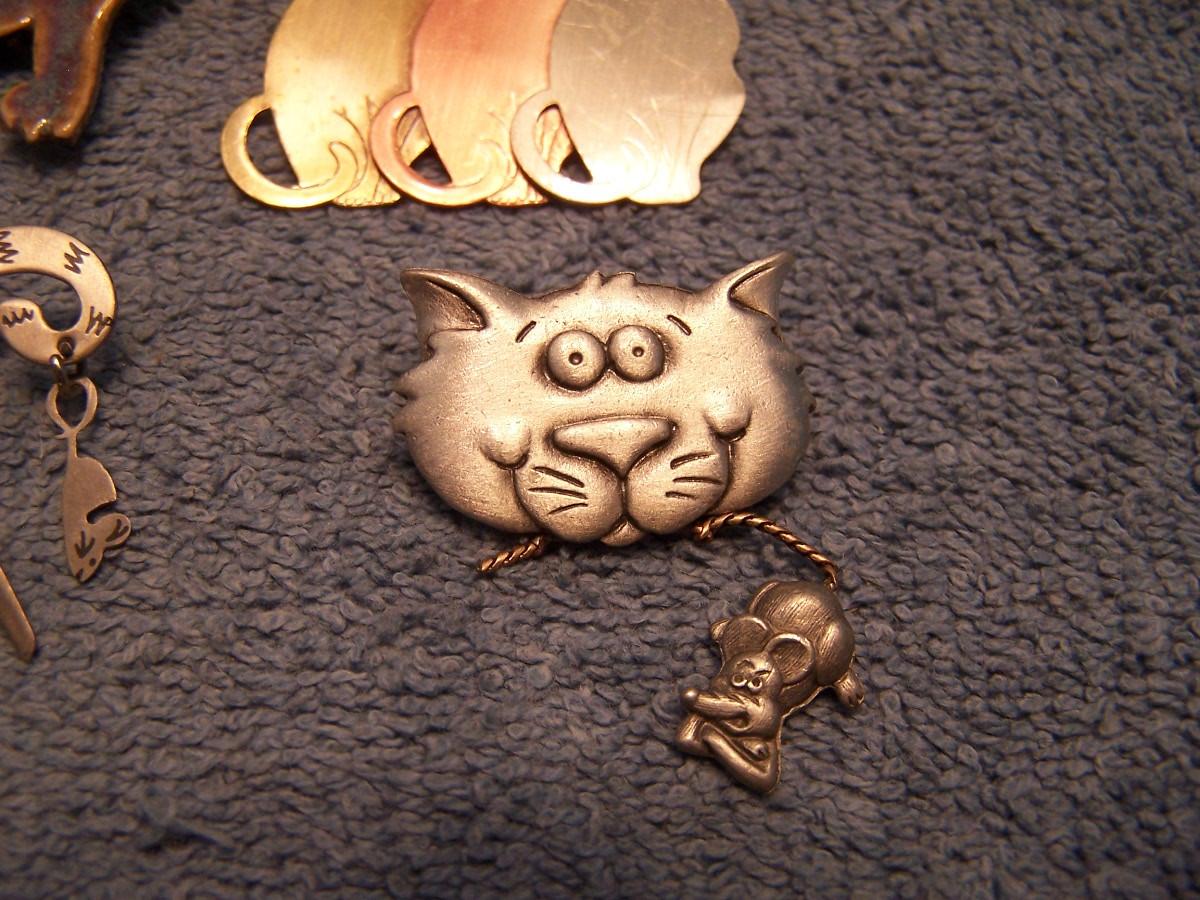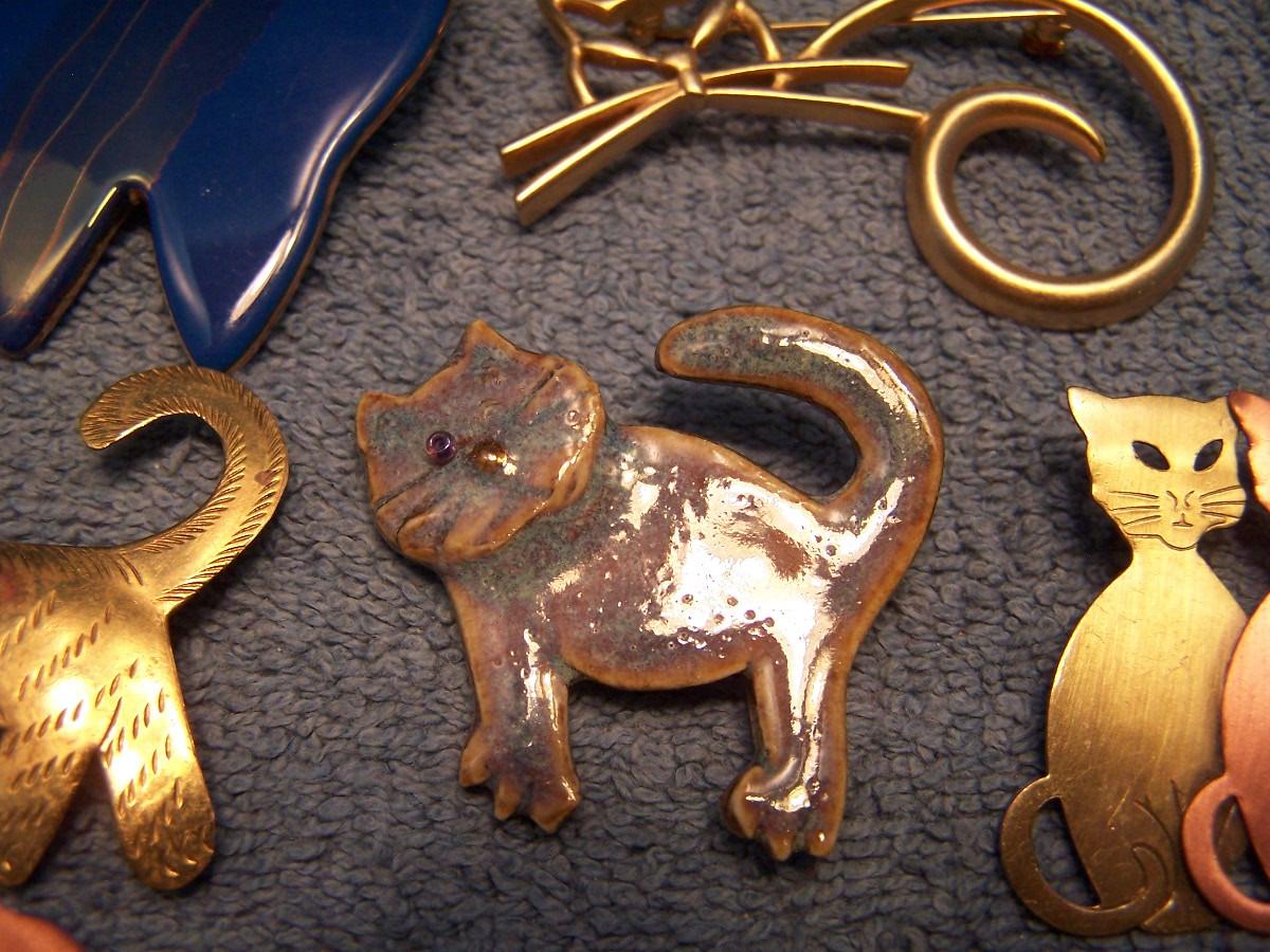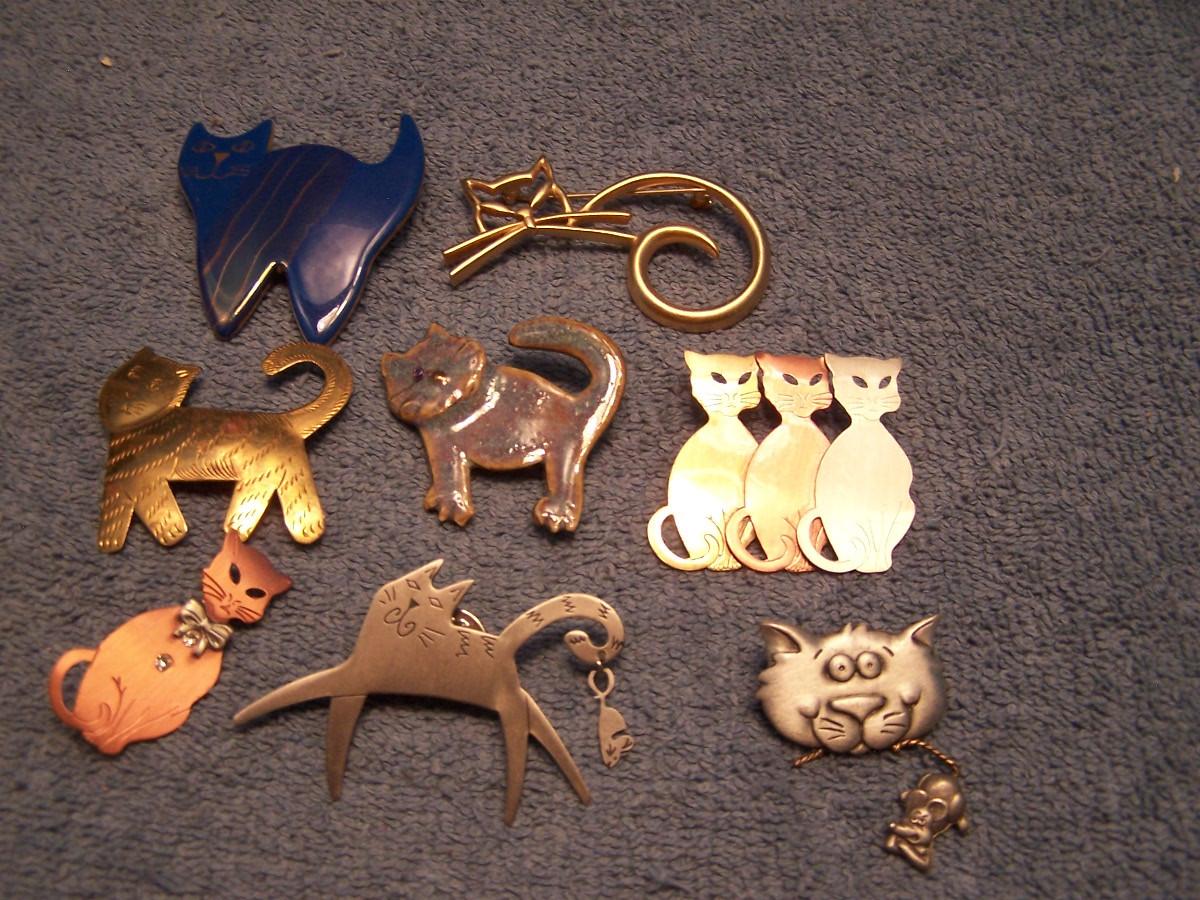 GREAT BUNCH OF COLLECTABLE COOL CAT PINS!!! THEY ARE MOSTLY METAL, 2 ARE CERAMIC... THE BLUE KITTY IS 1 3/4'' X 1 3/4''... LIGHT WEAR...